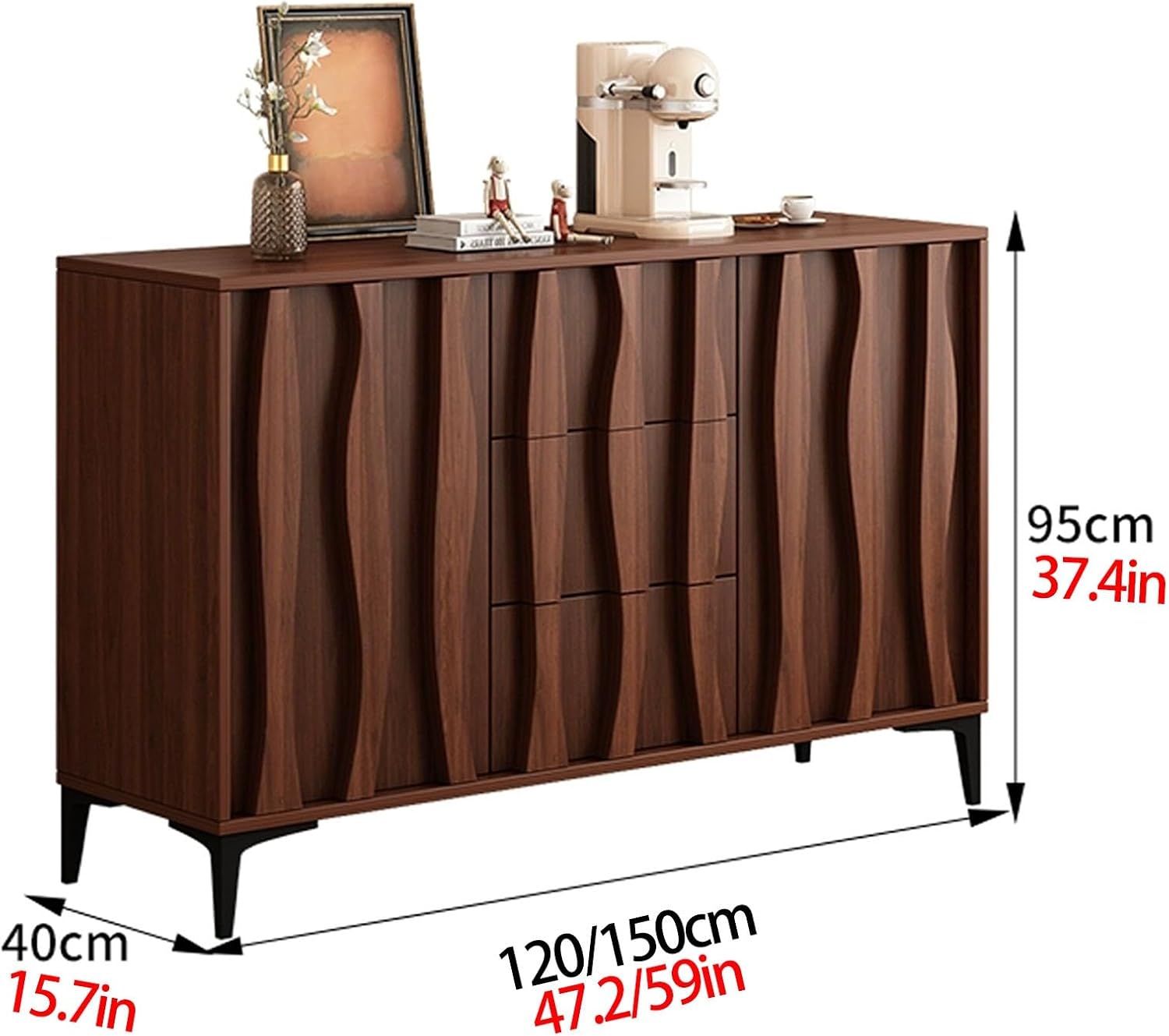 HOLGVE Available in multiple colors, this tall wooden cupboard effortlessly blends into farmhouse, modern, or contemporary decorEnhance your home organization with our spacious cabinet storage buffet that features deep drawers and a large pantry area. Perfect for storing dining essentials, kitchen items, or coffee room supplies.Product Name: Sideboard Buffet Cabinet, Buffet Cabinet, Sideboard Buffet, Sideboard Cabinet, Storage Cabinet, Coffee Bar Cabinet, Coffee Bar Table, Console Table, Fluted Sideboard Buffet Cabinet, Large Sideboard Buffet CabinetSize: 80x40x95cm/31.4x15.7x37.4in,100x40x95cm/39.3x15.7x37.4in,120x40x95cm/47.2x15.7x37.4in,150x40x95cm/59x15.7x37.4in,Product colors: Black, Brown, Black + BrownSelf-assembly is required.Material: Solid wood eco-boardNote:1. We are manually measuring, there may be an error of 3 - 5 cm, please prevail in kind;2. The color may exist a slight difference due to different screen displays;3. There are only storage rack, other products are shooting props;