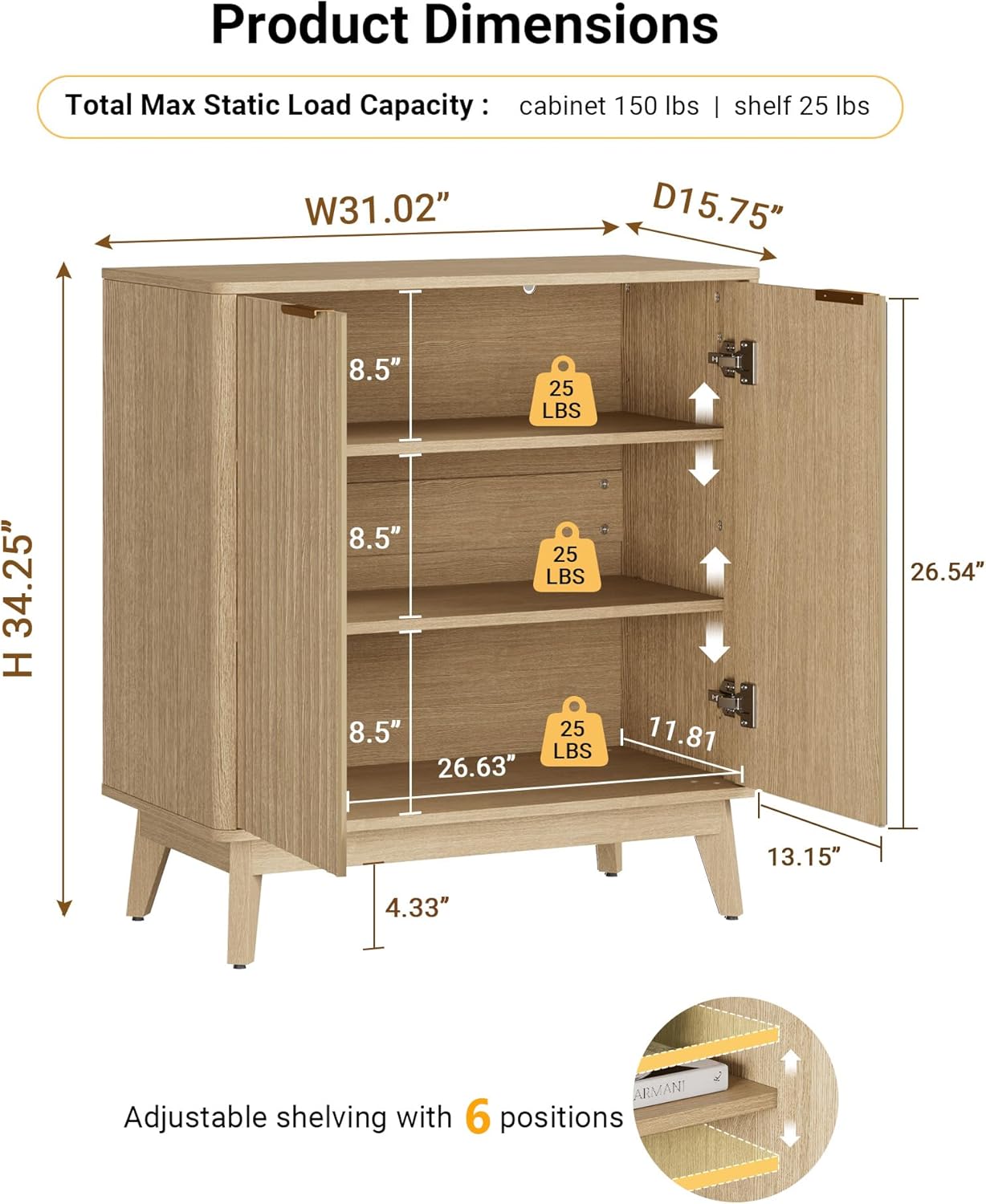 | Item Dimensions D x W x H | 15.75"D x 31.02"W x 34.25"H |