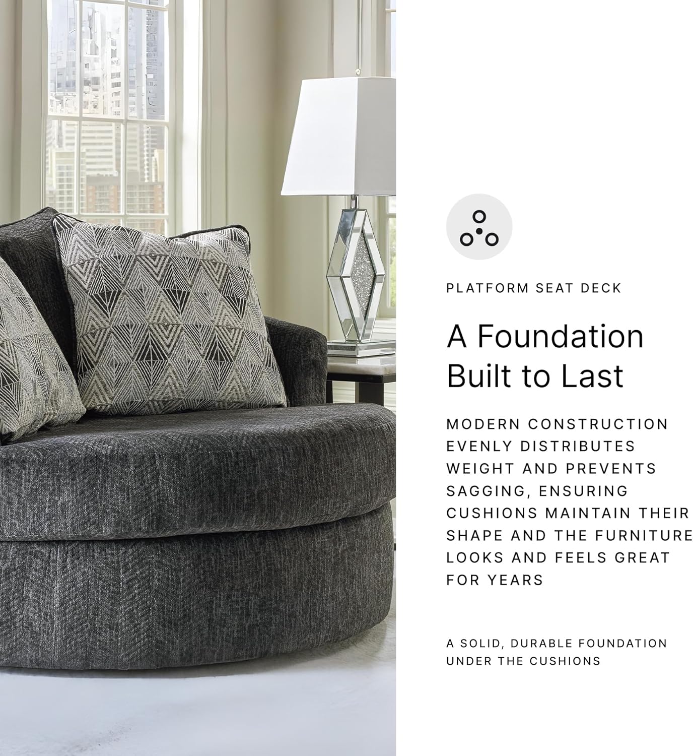 Bring stylish comfort and versatility to your living space with the Biddeford Oversized Swivel Accent Chair. Designed with a transitional silhouette, this chair features a 360-degree swivel base that adds functional flair, making it easy to turn toward conversation or your favorite view. The generously scaled seat includes a loose cushion and attached back for a cozy, inviting feel, while durable foam cushions wrapped in poly fiber provide long-lasting comfort. Upholstered in a richly neutral polyester fabric, this accent chair blends seamlessly with a variety of decor styles, from modern to traditional. Included accent pillows with soft polyfill add an extra layer of texture and support. Built with a reinforced frame and a platform foundation system that resists sagging three times better than traditional spring systems, this chair maintains its smooth, wrinkle-free look over time. Perfect for living rooms, reading nooks or bedrooms, the Biddeford Oversized Swivel Accent Chair combines fashionable function with everyday comfort.