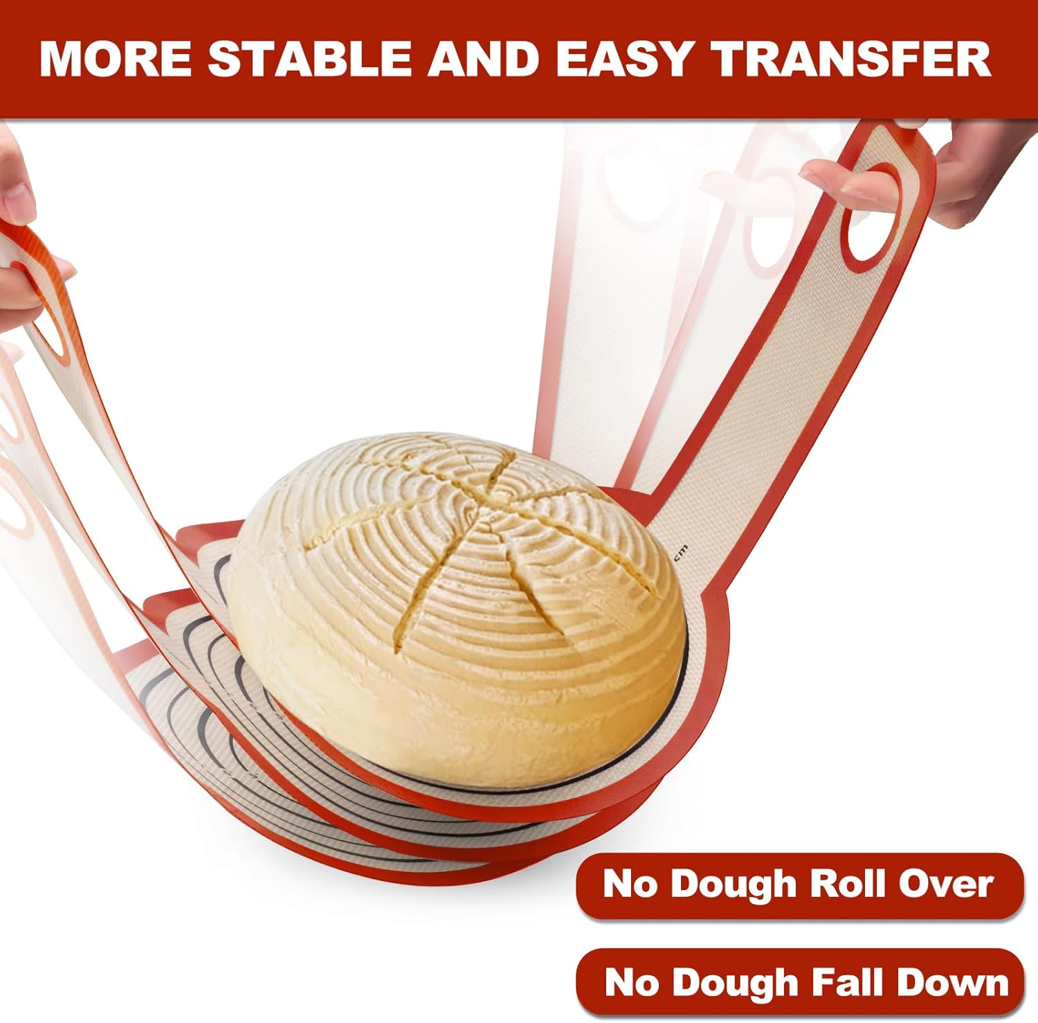 Silicone Baking Mats Set of 6, Food Grade Non-stick Reusable Baking Mat, Silicon Baking Slip Mats Oven Liner Sheet, Round & Square Cake Pan Mat, Pastry Board Rolling Dough Mats for Macaron Cookie,Silicone Bread Sling Dutch Oven . Non-Stick & Easy Clean Reusable Silicone Bread Baking Mat. With Extra Long Handles Bread Baking Sheet Liner, 2 Brown Set for Transferable Dough