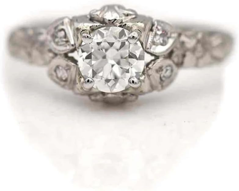 European Old Antique Inspire Round Diamond Solitaire Ring Art Deco Floral Edwardian Engagement Rings For Women 14K White Gold Plated Victorian Jewelry 925 Sterling Silver Handcrafted Ring. Material: Sterling Silver, which keeps glossy for a lifetime and is not harmful to people. Sterling Silver's strength makes it an excellent choice of material for jewelry. It is resistant to scratching and it will retain its beauty for years. Excellent Quality, Good Price, Comfort Fit Safe, and Comfortable to Wear in Daily Life. Gift idea: A wonderful gift for yourself, your lovers, your friends, your family, or other people dear to you on many occasions: birthdays, Christmas, dating, graduation, wedding, Mother's Day, engagement, Valentine's Day, and any special dates to you. Please carefully check the ring size you need before purchasing. We strive our best for your satisfaction. All your responses are valued highly and will be used further to improve the quality of our service and products. Please feel free to contact us if you have any questions!