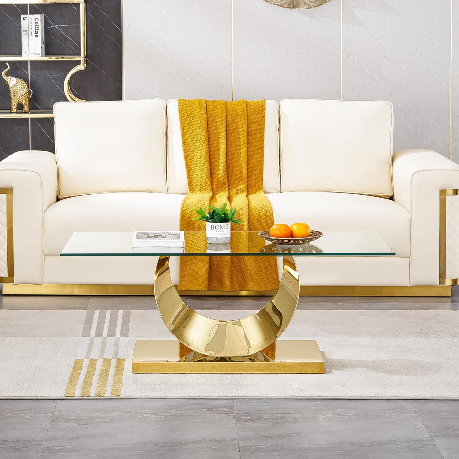 • 【Modern Luxurious Appearance】This contemporary coffee table with curved lines four c-shape base with clean tabletop for a minimalist glam look. With a striking design for a touch of impeccable style,this table will be sure to enliven any space