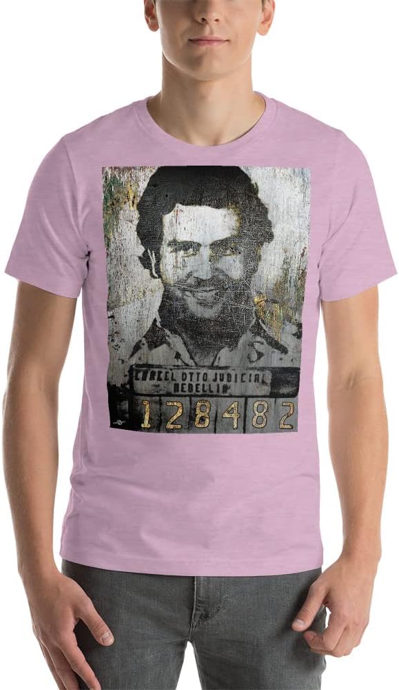 This t-shirt is everything you've dreamed of and more. It feels soft and lightweight, with the right amount of stretch. It's comfortable and flattering for all. 100% combed and ring-spun cotton (Heather colors contain polyester) Fabric weight: 4.2 oz/yd² (142 g/m²) Pre-shrunk fabric Side-seamed construction Shoulder-to-shoulder taping Blank product sourced from Guatemala, Nicaragua, Mexico, Honduras, or the US. Pop art comes in many forms. I consider this one of them. You'll find here a mugshot of Al Capone. Here we see Pablo Escobar's mug shot. Pablo Escobar was so powerful that the arrest, when it finally came in 1991, was on his own terms, and the prison was one built by himself. He is even thought to have put pressure on Congress to forbid extradition from Colombia before turning himself in, thus ensuring he could not be sent to the United States. This product is made especially for you as soon as you place an order, which is why it takes us a bit longer to deliver it to you. Making products on demand instead of in bulk helps reduce overproduction, so thank you for making thoughtful purchasing decisions!
