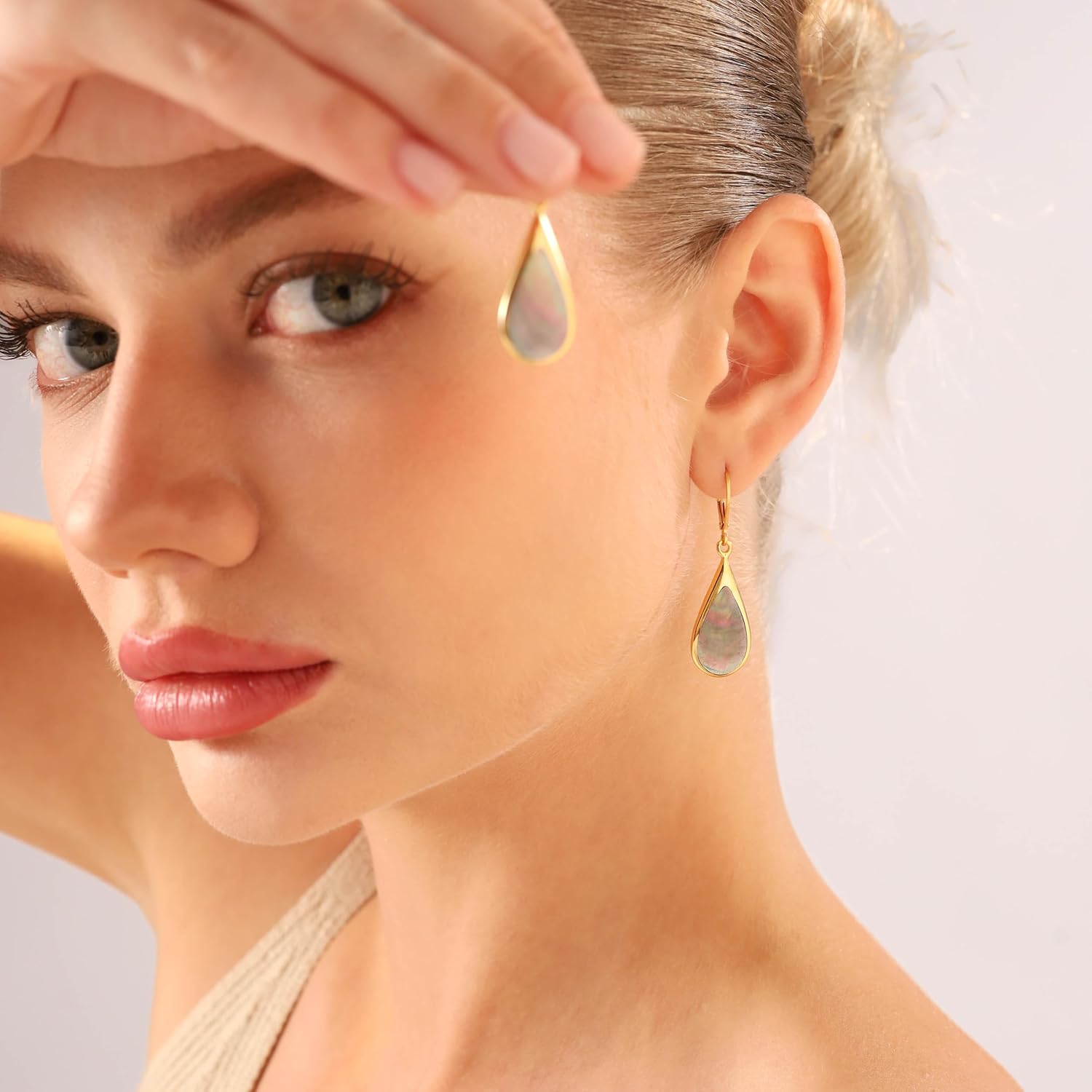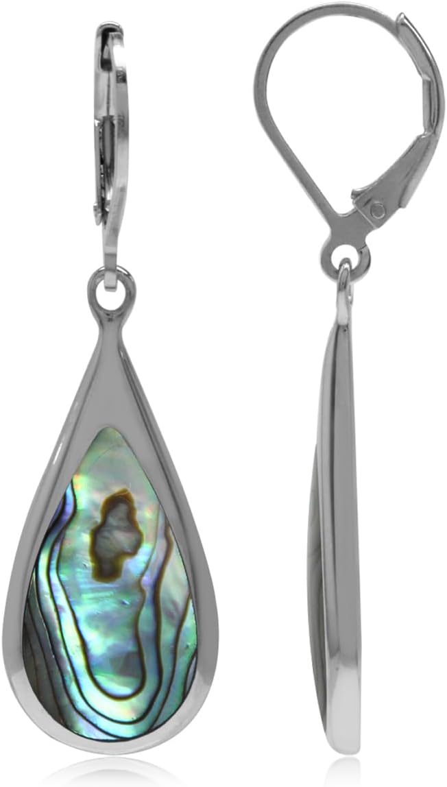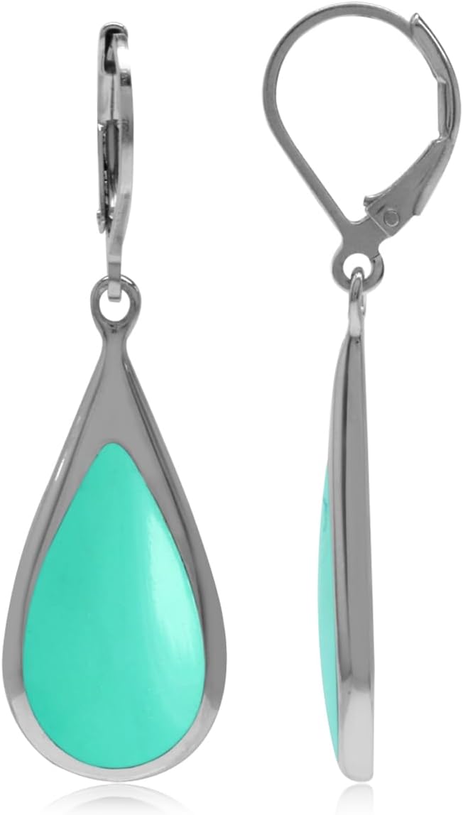 Silvershake Inlay White Gold Plated 925 Sterling Silver Drop Dangle Leverback Earrings