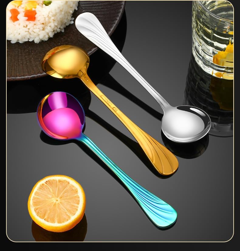 Material: Stainless steelApplicable to: AdultsStyle: Light luxurySpecification: 304 [Silver]Specification: 304 [Gold]Specification: 304 [Rose Gold]Specifications: 304 [Rainbow Color]Specification: 304 [Black]Polishing process: cloth wheel polishing (mirror polishing)Product Category: SpoonProduct quality level: first-class.About our BrandOur brand is GOODJAYVEN. We have always been committed to Household items. Do our best to bring more creative products to our customers.