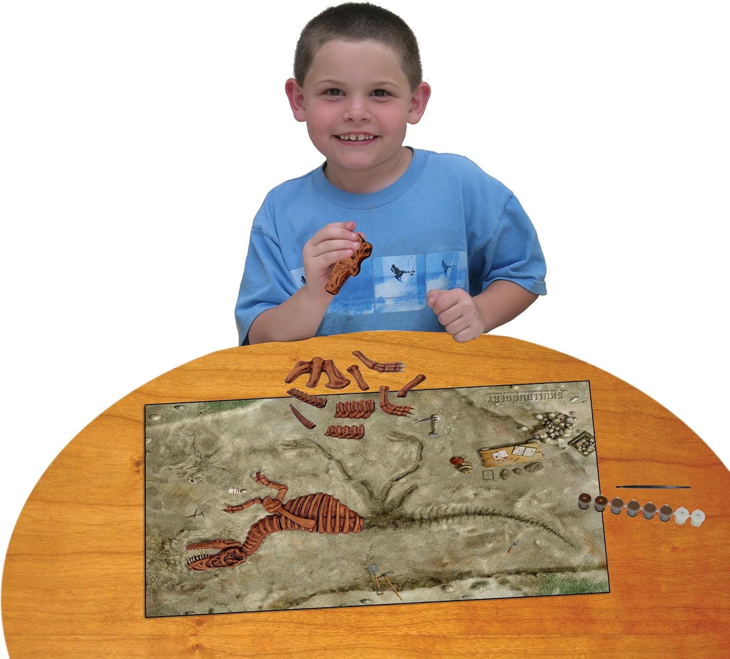 Cast & Paint: T-Rex. This creative kit includes everything needed to make a 34" diorama background with a 30" T-Rex model using 18 different molds of bone structures within the skeleton! Children and parents will share hours of quality time designing and making gifts for loved ones and friends. This package contains PerfectCast casting material, two mold trays, diorama background, brown paint, clear gloss, glue, paint brush, educational brochure and complete instructions. Recommended for ages 6 and up. Conforms to ASTM D4236. WARNING: Choking HAZARD - small parts. Not for children under 3 years. Made in USA.