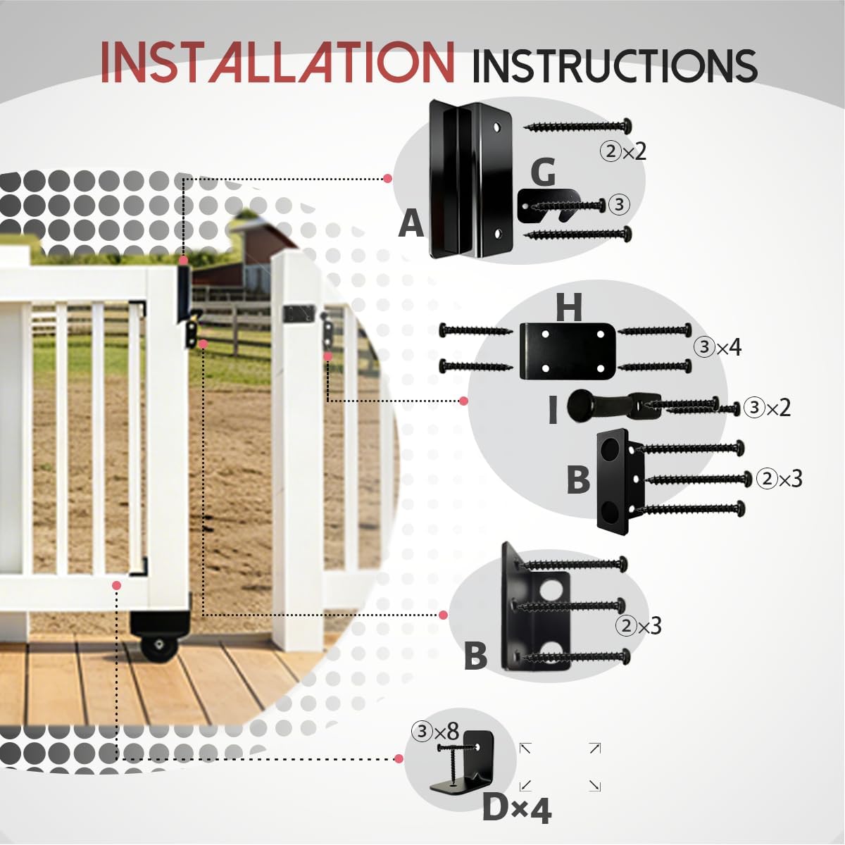 Name: Sliding Gate Kit, Heavy-Duty Sliding Gate, Sliding Door Hardware Kit Ideal for Communities, Backyards, Farms, Warehouses, Parking Lots Experience silky-smooth, silent door operationMaterial: MetalQuantity: 1pcsColor: As shownApplications: Experience silky-smooth, silent door operation. Perfectly complements the tranquil atmosphere of quiet communities, safeguards the serenity of backyard retreats, and provides a reliable, discreet access solution for farm entrances, warehouse sites, or parking lots—specifically designed for standard 2“ x 4” door frames.Package ContentsSliding Gate Kit × 1pcsNoteDue to extended shipping times, individual items may exhibit minor imperfections. Should you encounter a defective product, please contact us promptly for replacement.As dimensions are measured manually, actual product sizes may slightly differ from those listed above.Minor color variations may occur due to monitor settings, camera settings, or other factors.