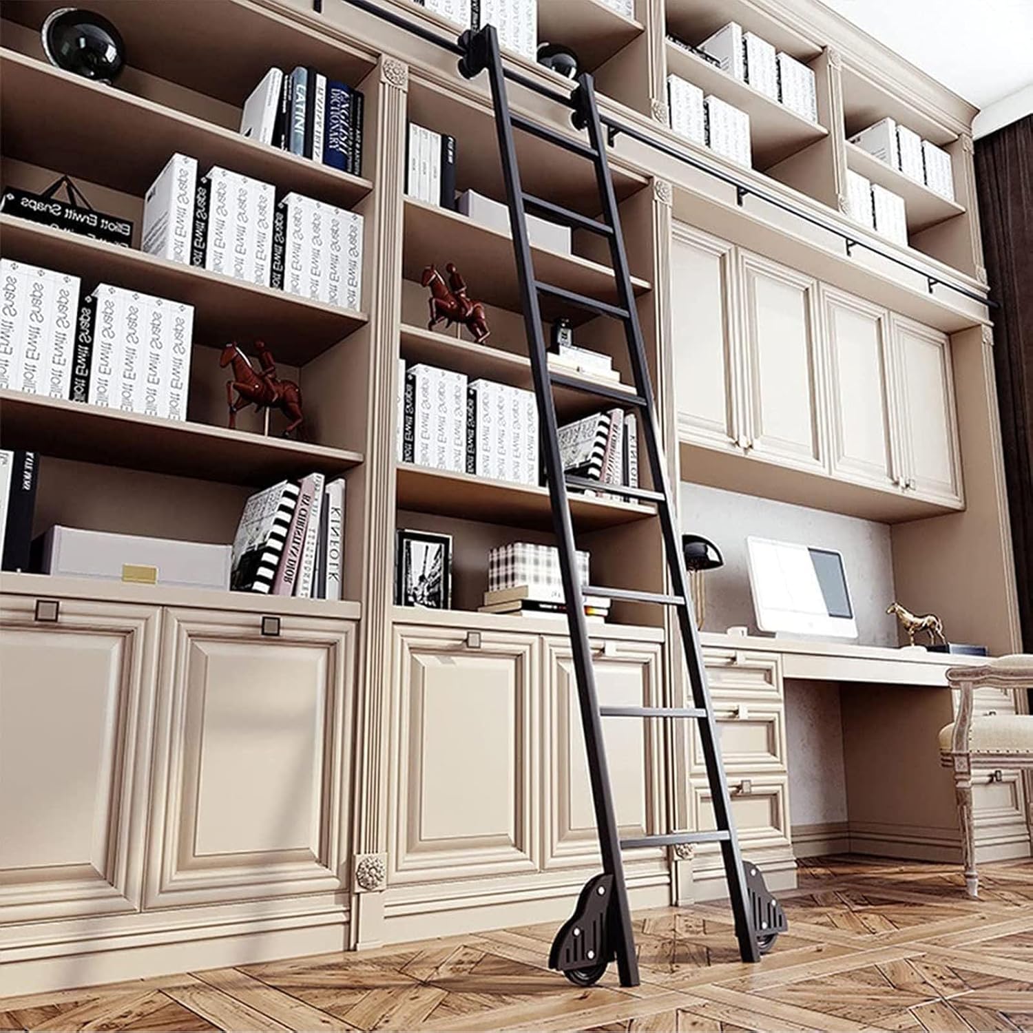 • ঞ【Perfect Sliding Ladder Track】: With the help of this track, you can go wherever you want, and it is effortless to climb up and retrieve things, which brings a another highlight to your home and assures you with outstanding quality.