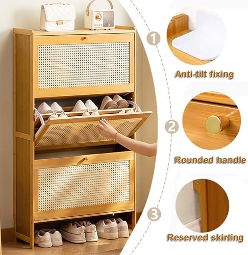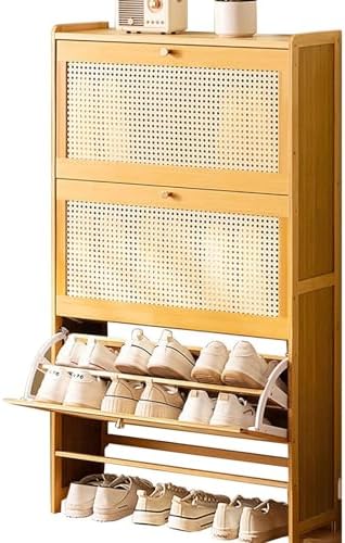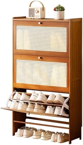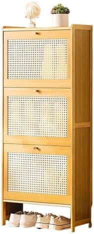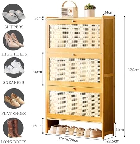 Enhance your home's organization with our stylish and multifunctional shoe cabinet, expertly designed to blend aesthetics with practicality. Ideal for busy entryways or cozy hallways, this cabinet provides a smart solution for keeping your footwear neatly stored while adding a touch of elegance to your decor. **Key Features:** - **High-Quality Construction**: Made from premium bamboo, this shoe cabinet ensures durability and long-lasting use, making it a valuable addition to your home. - **Space-Saving Design**: The freestanding structure features three foldable drawers, maximizing your entryway's potential for shoe storage without sacrificing style. - **Ventilated Cabinet Door**: The ABS plastic door incorporates an elegant mesh design that enhances airflow while complementing various home decor styles. - **Practical Surface**: The spacious top is perfect for storing essentials like umbrellas, keys, and wallets, making it a functional accent in any room. - **Slim Profile**: With its sleek design, this shoe cabinet is easily movable, making it an excellent choice for apartments or smaller living spaces. - **Versatile Use**: Suitable for entryways, hallways, bedrooms, and more, it offers convenience and organization wherever you need it. **Product Details:** - **Product Name**: Multifunctional Shoe Cabinet - **Colors Available**: Wood Color, Brown, Black - **Material**: Bamboo and ABS Plastic - **Dimensions**: - L 50 x W 22.5 x H 120 cm - L 70 x W 22.5 x H 120 cm **Package Includes**: - Shoe Cabinet Storage x1 **Assembly Tips**: For optimal assembly, if the doors appear uneven or misaligned after installation, please refer to the manual for instructions on adjusting the hinge screws inside the cabinet. Additionally, remember to secure the small fasteners at the back and tighten the screws at a 45-degree angle to ensure stability and durability. This multifunctional shoe cabinet is designed to elevate your home's organization, keeping your living spac...