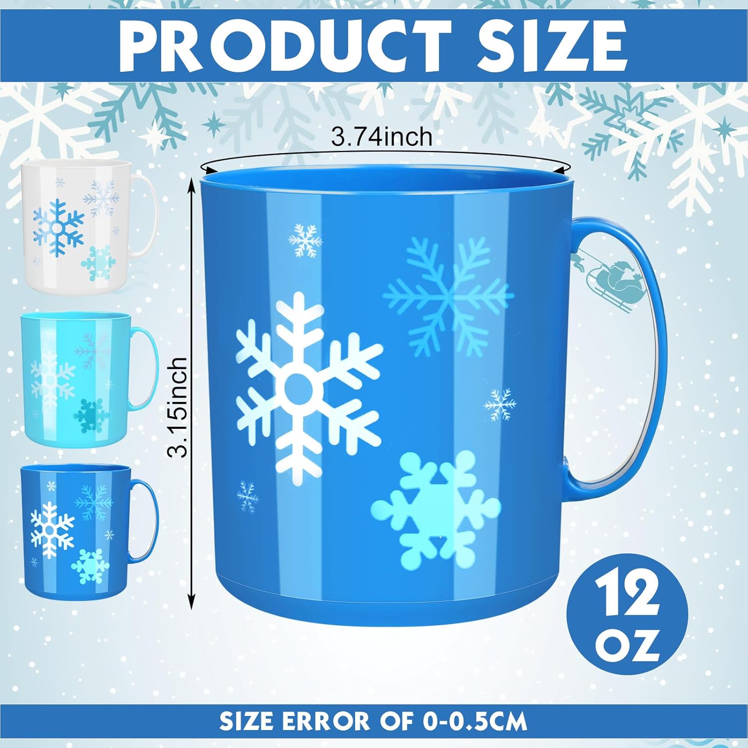 Attractive Designs: There are a series of snowflake-themed patterns printed on the winter mugs, such as different snowflakes colorful and classic; Rich patterns and novel designs will make your Christmas cups more eye-catchingApplicable Occasions: These plastic Christmas cups for kids can be widely applied on most occasions, such as Christmas parties, winter holidays, housewarming gifts, birthday parties, family gatherings, etc., practical and decorative in your kitchen, bathroom, dormitory, bar, cafe, restaurant and moreSpecifications: Material: plastic Main color: as the picture showsCapacity: approx. 12 ozPackage includes: 24 x Plastic Winter Mugs for KidsNotes: Manual measurement, please allow slight errors in size. The color may exist a slight difference due to different screen displays. The pattern printed on our product is not as trademark, just for decoration