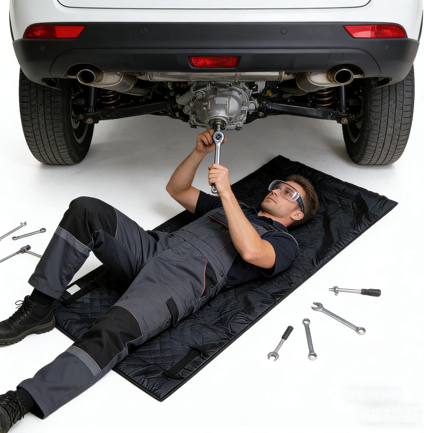 Small Foldable Technician Creepers Includes Carrying Straps Strong & Cleanable Under Car Crawlers PU for Low Car Repairs Features: This portable folding car creeper weighs only 0.7kg and features a low profile designs that easily slides under low vehicles like sedans and sports cars, providing ample space for oil changes and various automotive repairs Built with strong double layer PU component, it has a smooth inner surfaces and outer fabric that resists wear, oil, and, offering comfortable on hard surfaces and easy with a simple wipe Ideal for professional mechanics, enthusiasts, and car owners seeking a tool for automotive maintenance and undercarriages inspections Perfect for garage repairs, roadside emergencies, or any scenario requiring quick access to the vehicle ' s underside for tasks like oil changes or inspections Its innovative wheel designs allows effortless sliding back and forth without repositioning, enhancing efficiency and reducing physical strain during automotive repair projects Specifications: Component: PU Size: about 68x147cm / 27x58inch Package Includes: 1xCar Repair Creeper Note: 1.Please allow 1-2cm errors due to manual measurement, make sure that you do not mind before you order 2.Due to the difference between different monitors, the picture may not reflect the actual color of the item