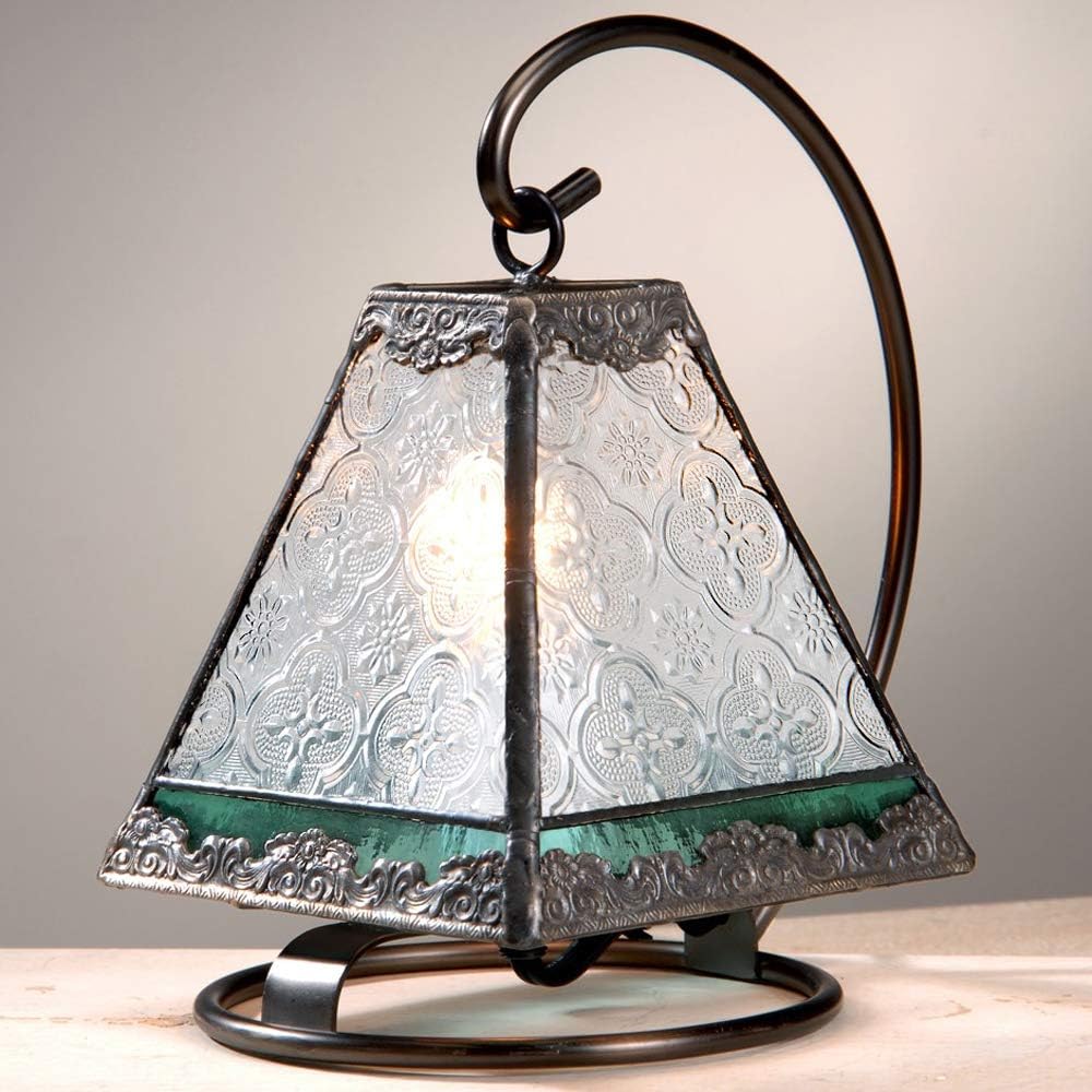 This small table lamp is sized just right to be used as ambient lighting or as a night light The antiqued brass base has an in-line switch and comes complete with a 4 watt night light bulb The metal trim and solder have been antiqued with a charcoal patina and waxed to keep the finish beautiful for years to come. Polish with a soft dry cloth. Feel comfortable to know all J Devlin products are made with lead free solder to protect you and the environment. Clear glass embossed with a vintage texture, accented with sage green and trimmed with a metal filigree blend to make a decorative lamp that will add warm light to dark corners. The vintage textured glass diffuses the light making this the perfect ambient light for the bedroom, bathroom or nursery. Functional and decorative it will make an ideal gift or add to your own wish list today! Each stained glass mini lamp is carefully handcrafted by skilled artisans using a copper foil and solder technique developed by Louis Comfort Tiffany in the late 1800’s. This age-old art form combined with 21st century designs creates the perfect combination for unique home décor.
