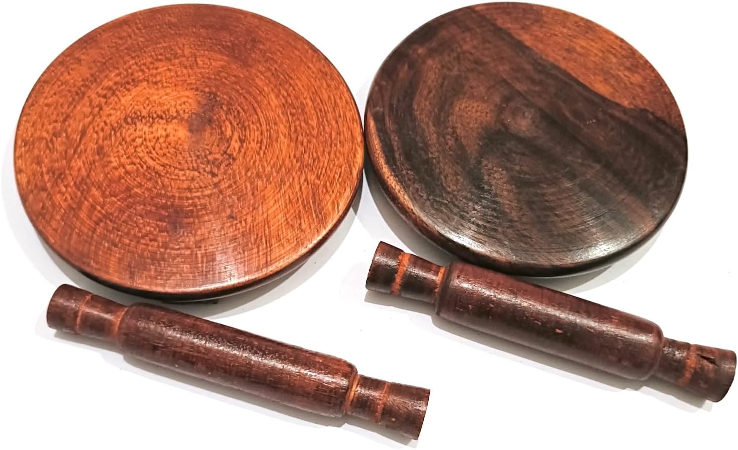 Discover the authentic charm of traditional Indian cooking with this beautifully crafted wooden Chakla Belan set. Each set includes two round rolling boards (chakla) and their matching rolling pins (belan), handcrafted from rich brown wood with natural grain patterns that make each piece unique. The smooth, circular rolling boards provide the perfect surface for rolling out rotis, chapatis, puris, and other flatbreads, while the expertly designed rolling pins offer precise control and even pressure distribution. The rolling pins feature an ergonomic design with subtle rings for enhanced grip and control. These time-tested kitchen tools bring generations of culinary tradition to your kitchen, allowing you to create perfectly round, evenly rolled flatbreads. The natural wood construction is durable and develops a beautiful patina with use. Hand wash recommended to preserve the quality of these essential kitchen implements. Whether you're an experienced cook or just beginning to explore Indian cuisine, this traditional set is an indispensable addition to your kitchen arsenal.