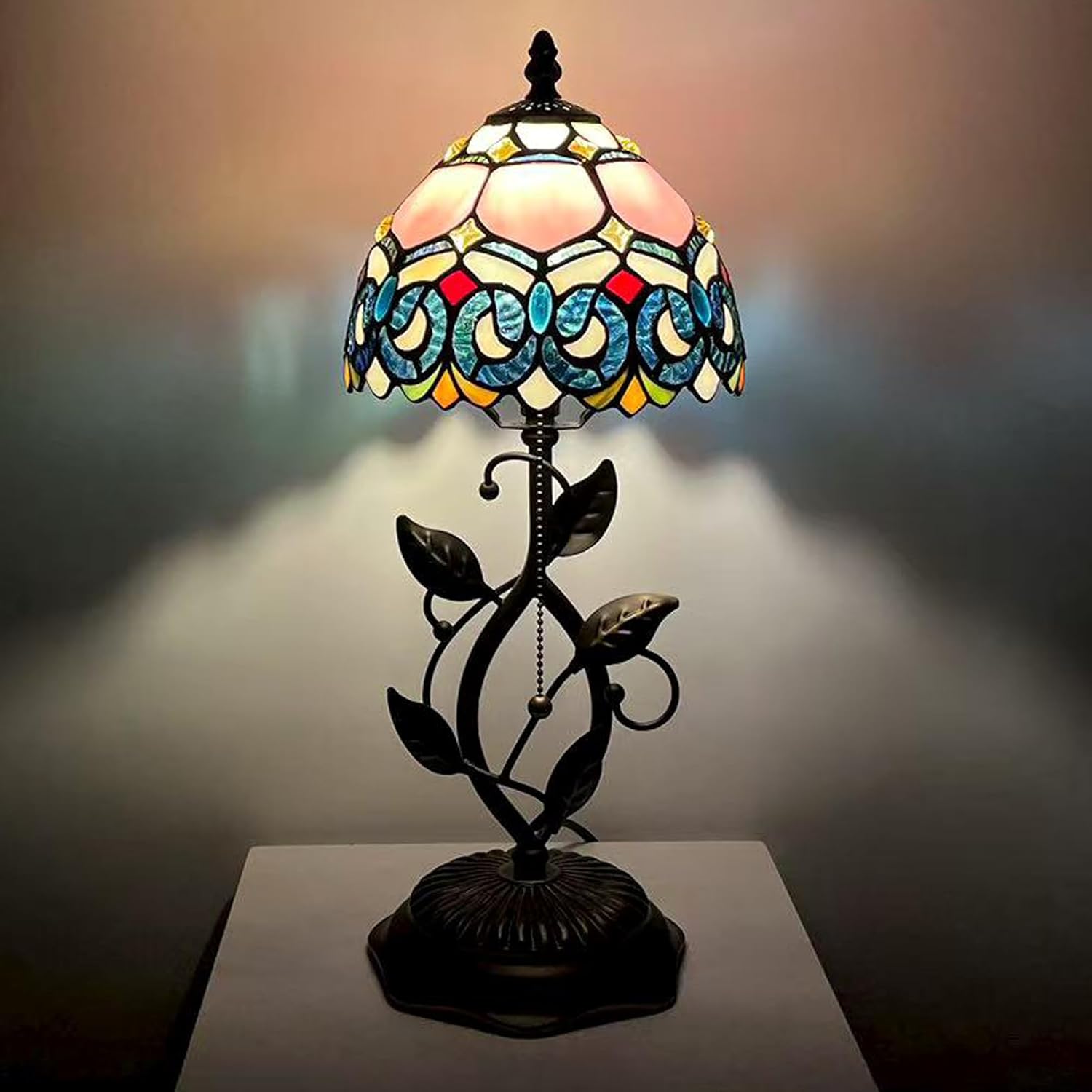 | Material Type | Stained glass lampshade and bronze resin metal leaf base |