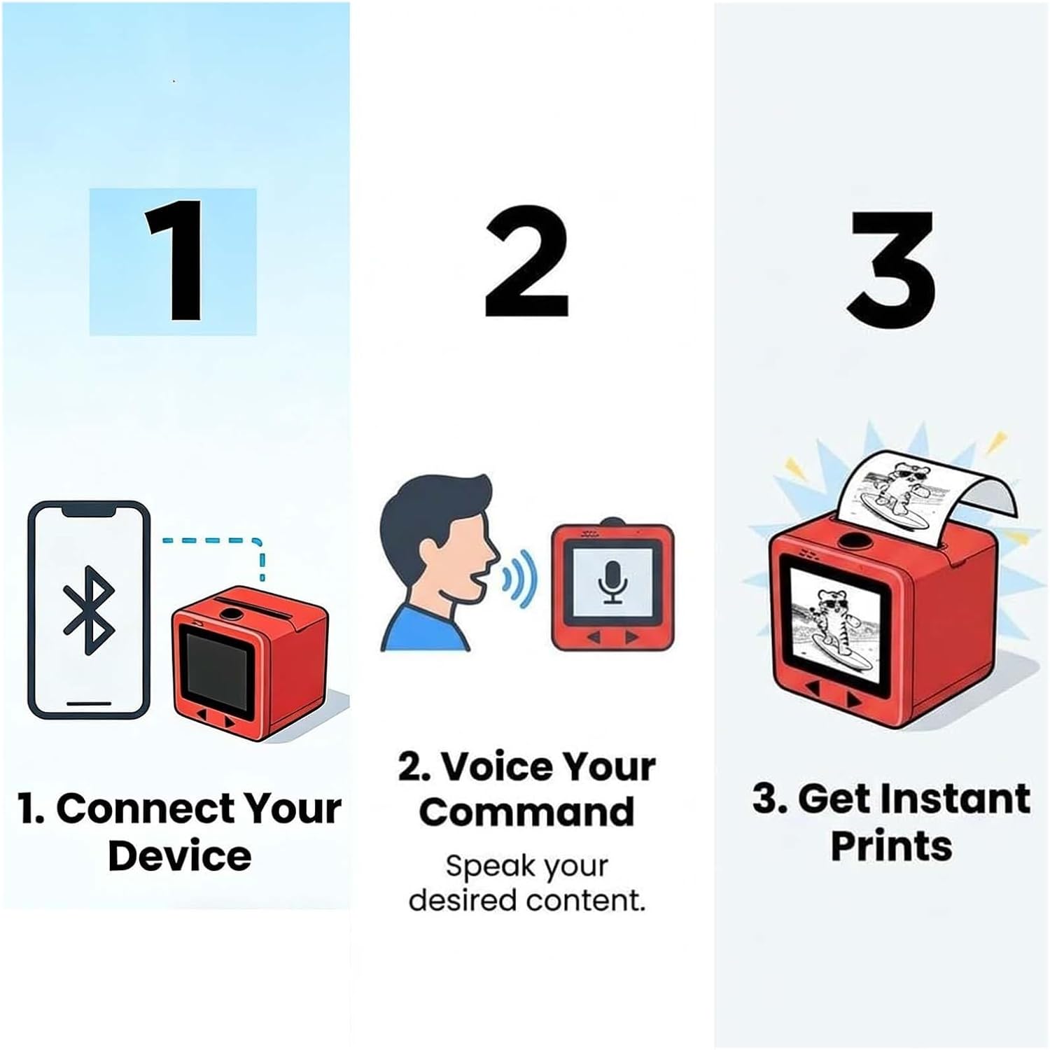 Q&A:Q1: How does the sticker creation process work?A: Simply speak your idea. The AI voice control instantly transforms it into a vibrant, ready-to-print sticker.Q2: Is it easy to carry and use anywhere?A: Yes. Its compact, lightweight, and inkless design makes it perfectly portable for office, study, home, or on-the-go projects.Q3: What about print quality?A: It uses high-resolution thermal printing to produce sharp, professional-looking stickers with excellent clarity and detail.Q4: Can I see the design before printing?A: Yes. The built-in display shows a real-time preview, so you can adjust your design and ensure perfect results every time.Q5: What can I use the stickers for?A: It's ideal for DIY crafts, labeling, personalizing belongings, and countless creative projects at home or in the office.Product Specifications:Name: Smart Ai Voice Sticker PrinterPackage Includes:1 PC * Smart Ai Voice Sticker PrinterPlease Notes:1.Please allow slight dimension difference due to different manual measurement.2.Due to the light and screen difference, the item's color may be slightly different from the pictures.3.We value every customer response and offer friendly customer service.4.We sincerely hope you could enjoy the purchase and enjoy your life carry with our products.