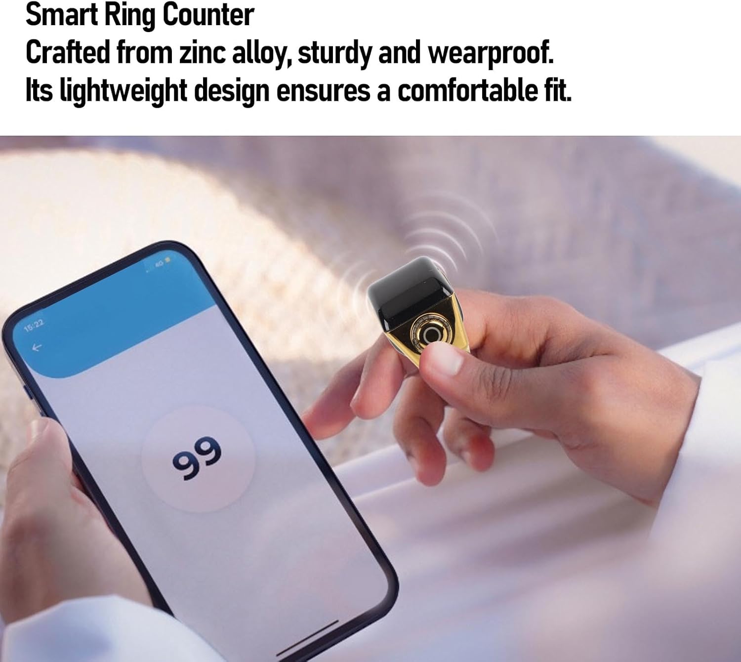 Specification: Item Type: Smart Rings Counter Material: Zinc Alloy Weight: Approx. 135.00g / 4.76oz Level: IP67 Rings Battery (Built in): Lithium Ion, 401215, 40mAh Battery Compartment Battery (Built in): Lithium Ion, 120mAh Download Program: for Android, for Equantu Function: Counting, 5 Timers ANAN Reminders How to Use: Short press: Wake up the screen and display the main screen (before binding the APP, the main screen is a tasbeeh counter, but after binding, the main screen displays the time). When the time interface is displayed, short press the button to enter the tasbeeh counter. Long press: Press and hold the button for 3 seconds to start a new count on the main screen or tasbeeh counter interface. When the tasbeeh counter is zero, long press for 3s to display the Bluetooth address and then close. Packing list: 1 x Smart Rings Counter 1 x Charging Case 1 x Charging Cable 1 x Instruction Manual