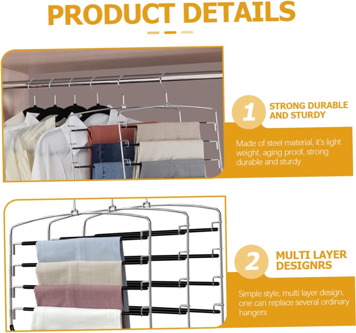 Package List 3 x 5-tier Skirt Hangers Characteristics - Material: High manganese steel hangers. - Color: Black pants hangers. - Size: 38.00X33.50X0.50cm/14.93X13.17X0.20inch hangers for trousers. -Product Info:Pants rack - Excellent gift choice for friends, colleagues and the loved. They will be happy for saving pants hangers. - Manufactured with premium steel material, with excellent durability and practicality pant hanger. - 5-tier design, can hold many items at the same time, useful and excellent, flexible and jeans hangers. - Great and excellent for wardrobe, closet, and other places so that can save space suit hangers. - Perfect and wonderful for hanging pants, skirt, dresses, shirts, socks, stockings, and more trouser hangers.Goods Informationhangers for trousers If you are looking for professional and skirt hanger, then your research is over here.pants hangers It is easy to use and bring you much convenience.jeans hangers space saving That's because our product can meet your need.space saving pants hangers Perfect for hanging pants, dresses, shirts, skirt and more, 5-tier design.clothes hangers›skirt hangers Adopted of , it is practical and for long time use
