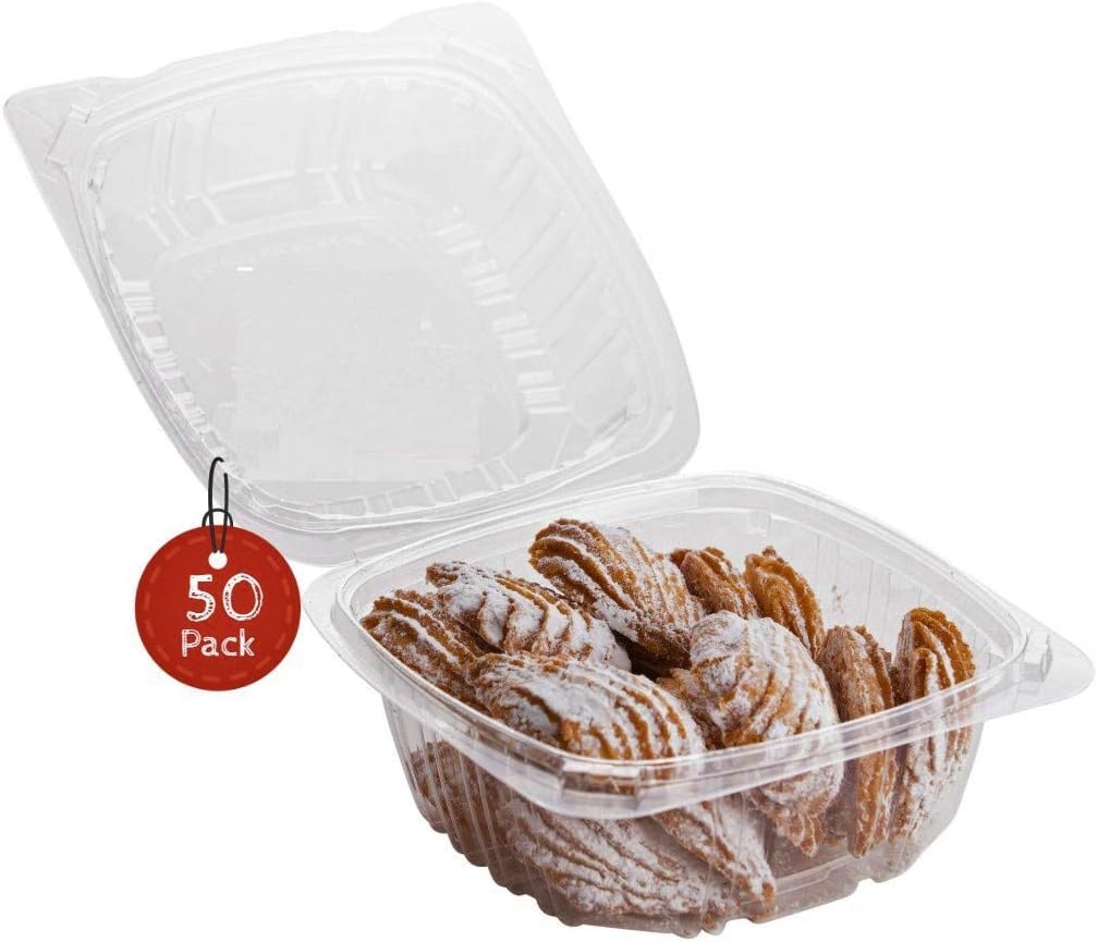 Smygoods Plastic Clamshell Food Containers, (Pack of 50-8x8x3 3/8) 3-Compartment, to go Containers, Hinged Food Container