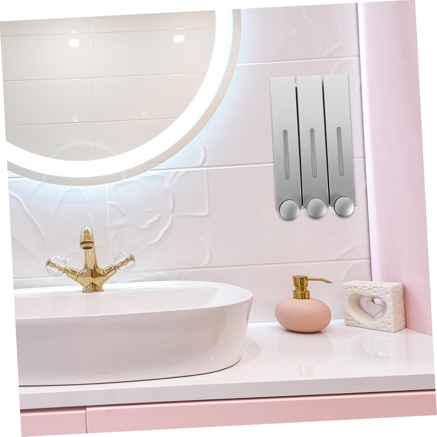 Package Include 1 x shower dispenser Features - Size: 28.00X15.00X8.00cm/11.00X5.89X3.14in Shower Gel Container - Color: Silver Shampoo Holder -Material:ABS,PVC Shower Soap Dispenser - The dispenser bottle features a leak-proof design on the bottom, no need to worry about your bathroom being a mess Shampoo And Conditioner Dispenser. - Three-head design allows simultaneous use of shower gel, shampoo, and soap, convenient and practical Bathroom Shower Dispensers. - Moderate capacity, mounted on shower wall, does not take up too much space, convenient for carrying and storage Wall Mount Shower Dispenser. - Made of plastic materials, tough and reliable, resistant to bumps or falls, long-lasting without easy damage Soap Organizer. - The dispenser has a sleek appearance, stylish and minimalist, suitable for various bathroom decor styles Bathroom Shampoo Dispenser.Goods DescriptionShower Dispenser It features a three-head design, allowing you to store shower gel, shampoo and conditioner at the same time.Soap Dispenser Wall Mounted The manual dispenser is a practical and convenient tool for your bathroom.Soap Organizer The exterior adds a touch of fashion and simplicity to any bathroom decor