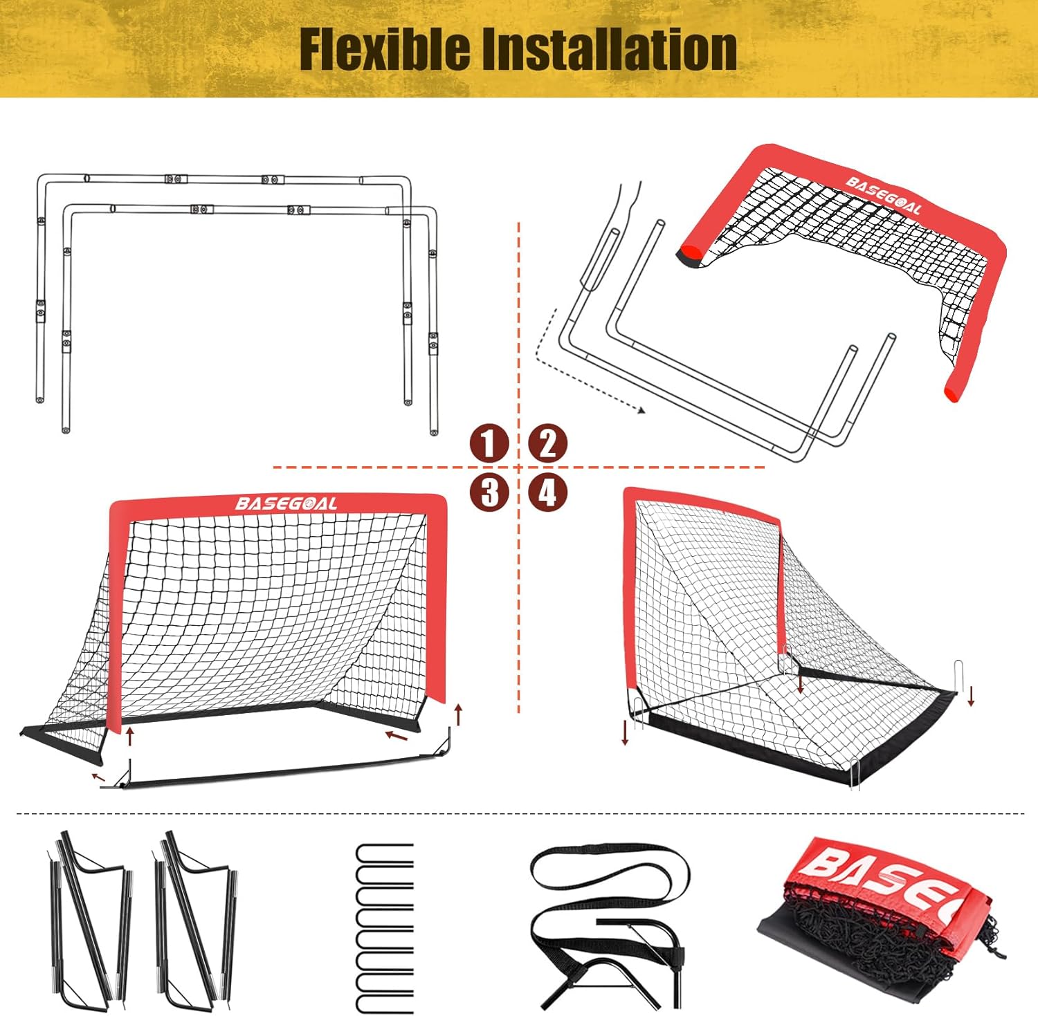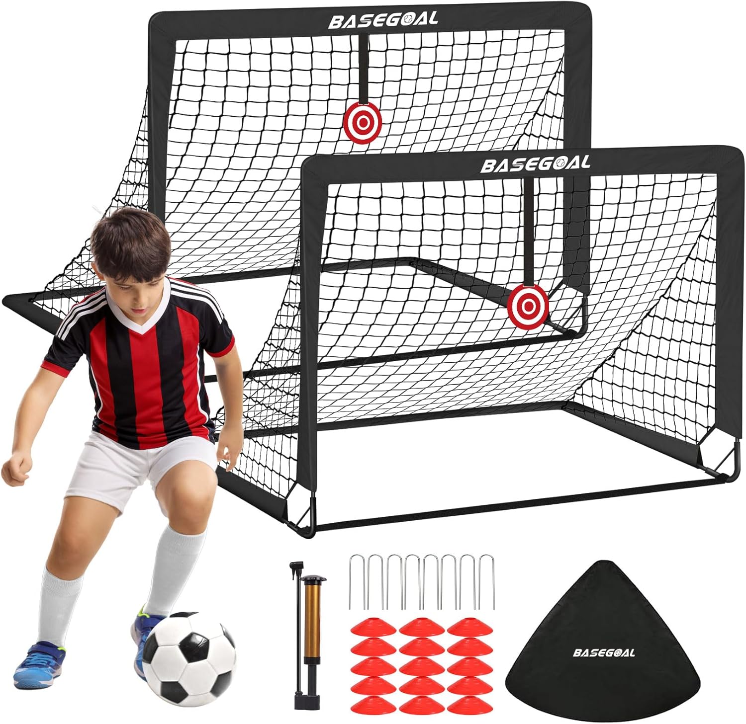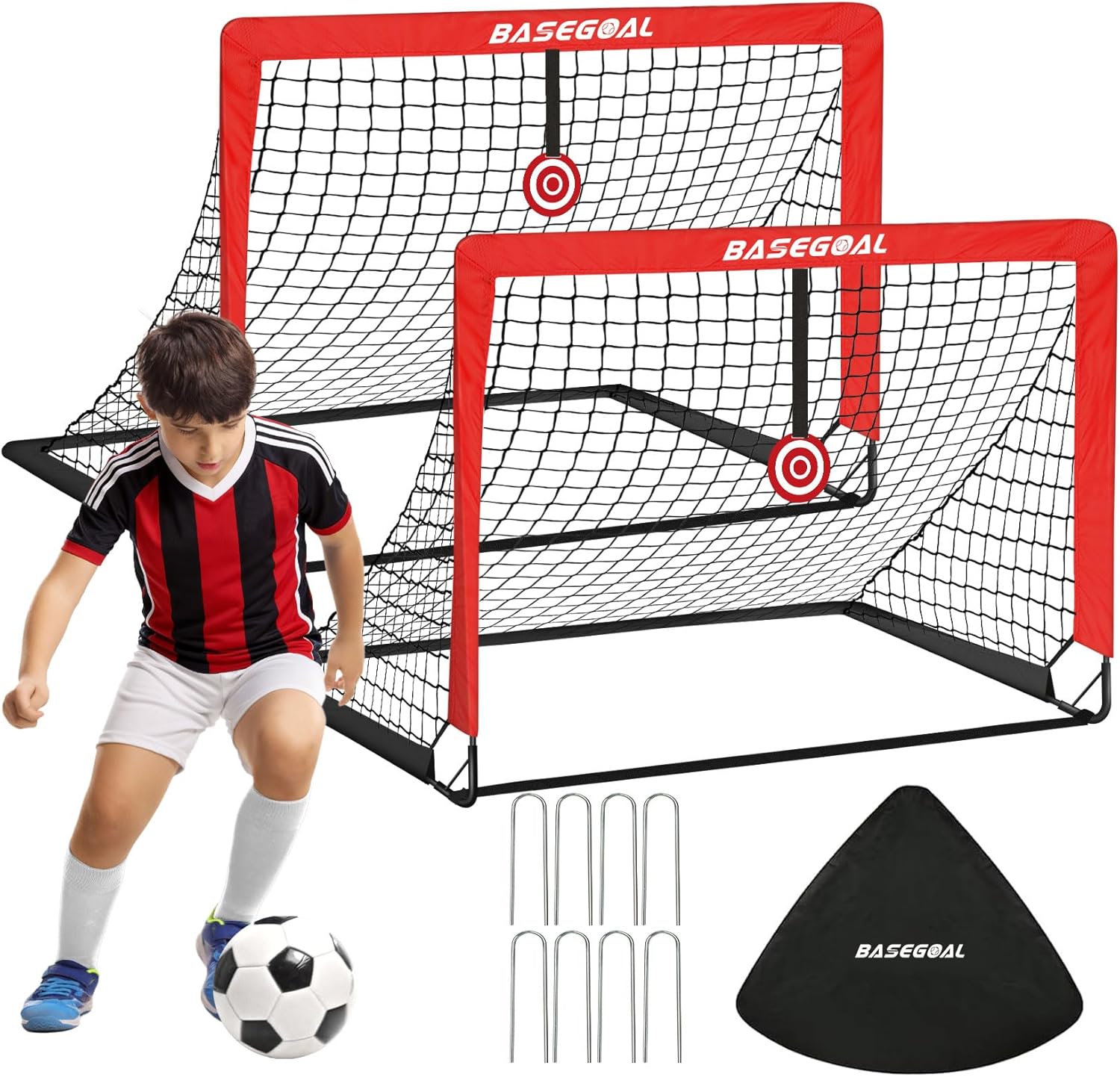 4x3ft portable soccer goals set of 2 for backyard training and outdoor play. Perfect for kids and youth (ages 8-12) looking to develop their soccer skills. These durable soccer nets provide endless fun for sports and games, making them ideal soccer equipment and great gifts for young athletes.