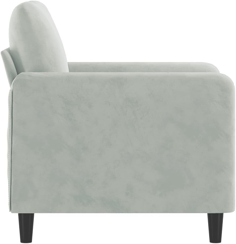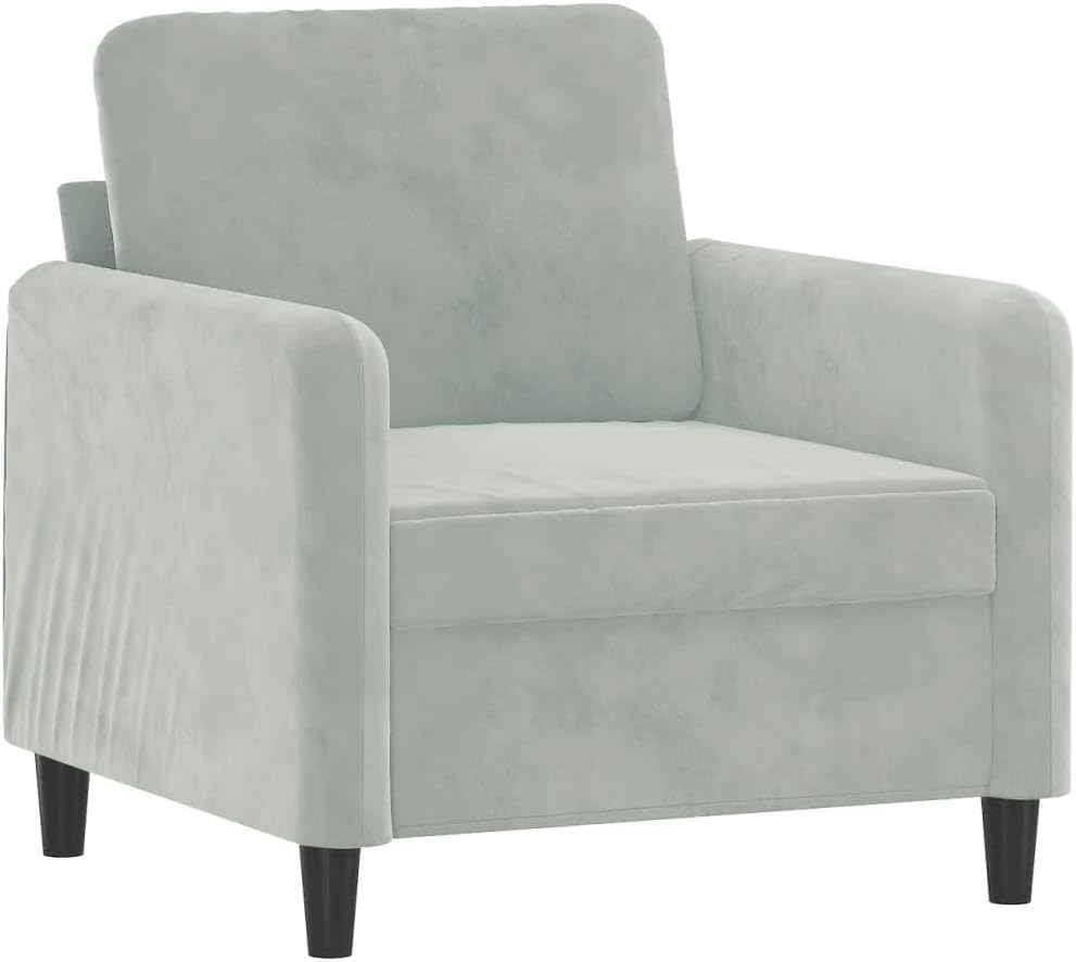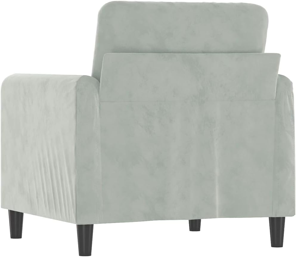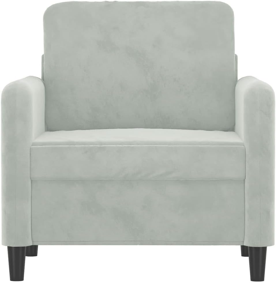 This Light Grey Velvet Armchair blends comfort and style effortlessly, making it a versatile seating choice for any space. Great for living rooms, bedrooms, or offices, its modern design and soft feel create a welcoming vibe, perfect for relaxing or enjoying a good read.Comfortable Seating: Featuring soft, heavily cushioned armrests and a spacious seat, this armchair offers amazing comfort for entertaining or unwinding. Enjoy generous support as you lean back, designed to fit an adult perfectly.Stylish Design: Its modern look and eye-catching light grey color make this chair a statement piece, enhancing any room’s decor effortlessly. The matte finish adds to its charm, making it a standout addition to your home.Durable Materials: Made of high-quality velvet, this chair is not just pretty but also built to last. This luxurious fabric not only looks great but ensures the armchair's longevity, giving you confidence in your purchase.Easy Maintenance: The stain-resistant fabric means spills are easy to handle, keeping your chair looking pristine without the hassle of complicated cleaning. It’s practical, combining comfort and style for everyday use.Versatile Uses: Perfect for reading, relaxing, or watching TV, this chair fits seamlessly into any setting, creating a comfy spot wherever you need it.Colour: Light Grey Shape: RectangularMaterial: Farbic VelvetFinish: Matte Indoor/Outdoor: Indoor OnlyCover Included: NoRoom: Living RoomMaximum Number of People: 1Maximum Weight: 110 kgDimensions: 78 x 77 x 80 cm (W x D x H)Leg Height: 18.0 cmWeight: 12 kgSeat Depth: 50.0 cmSeating Capacity: 1Swings: NoDelivery Contains: Sofa chair, assembly instructionsAssembly Required: YesRecommended Number of People for Assembly: 2SKU: 359422