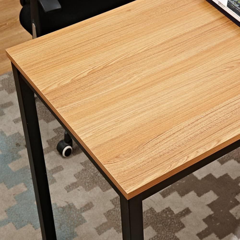 This is a 31.5 inch computer desk, suitable for small space as a desk study desk. The computer desk is made of high quality wood panels and sturdy metal legs, which are sturdy and suitable for long-term use. Brown top and black metal legs design, modern style small desk.