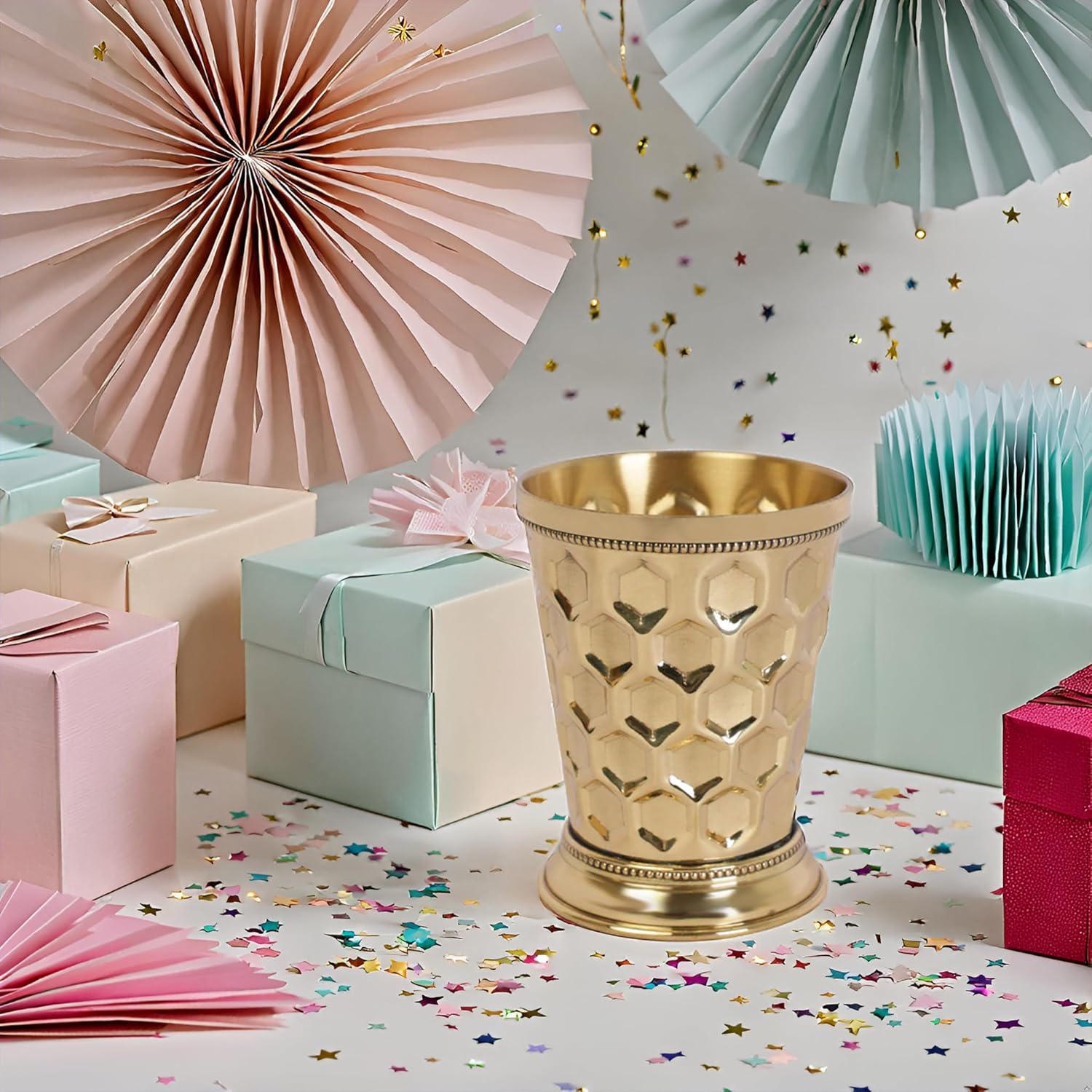 | Specific Uses For Product | Cold Drinks, Kentucky Style, Vintage aesthetic to table settings and home decor., Works well for Ayurvedic health benefits, as brass is believed. |