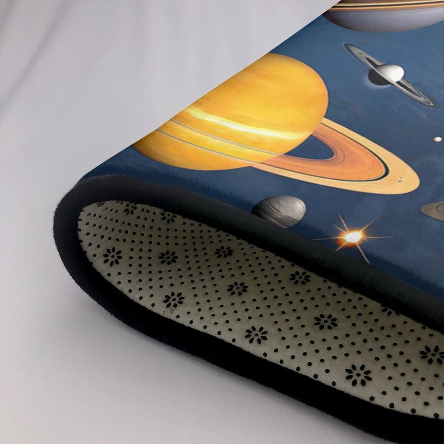 Transform your home with the exquisite WZYWHJ Solar System Planets Picture flannel carpet floor mat 72"x48" . Crafted from high-quality flannel fabric (polyester), this carpet boasts a high density space elastic cotton interlayer that is not only absorbent but also incredibly soft to the touch. The delicate fluff texture adds a touch of luxury while ensuring no pilling or fading over time. The innovative middle layer features a high-density memory sponge that effectively relieves foot pressure, making it a comfortable choice for any room. Suitable for a wide range of scenarios including living rooms, offices, coffee tables, beds, and balconies, this carpet floor mat offers versatility and style. The bottom of the mat is made of non-woven fabric and plastic, providing an anti-slip and durable foundation. Easy to clean, wear-resistant, and lint-free, this WZYWHJ carpet is the perfect blend of comfort, functionality, and durability.