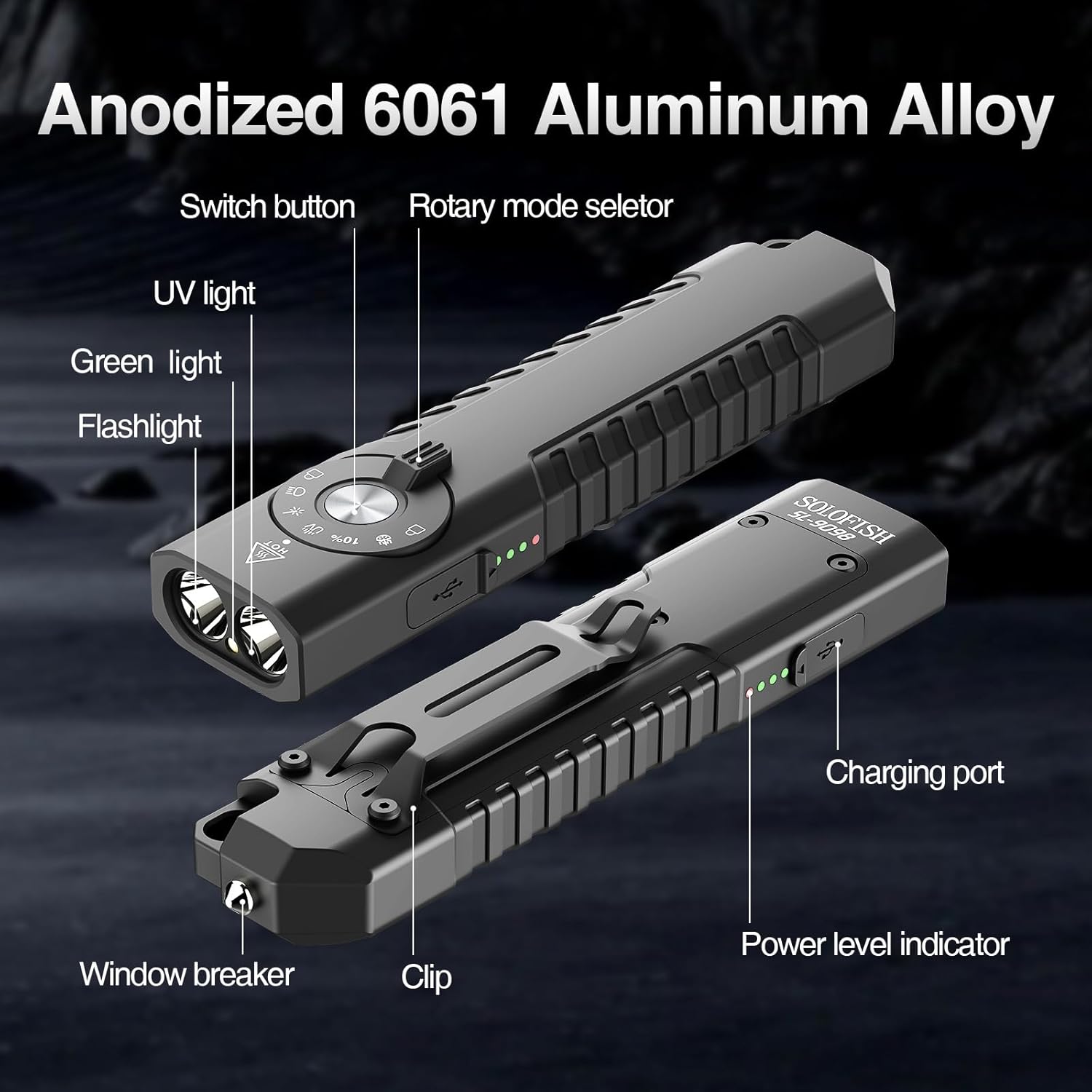 Solofish 1400-Lumen Aluminum 5-in-1 EDC Flashligh with Window Breaker