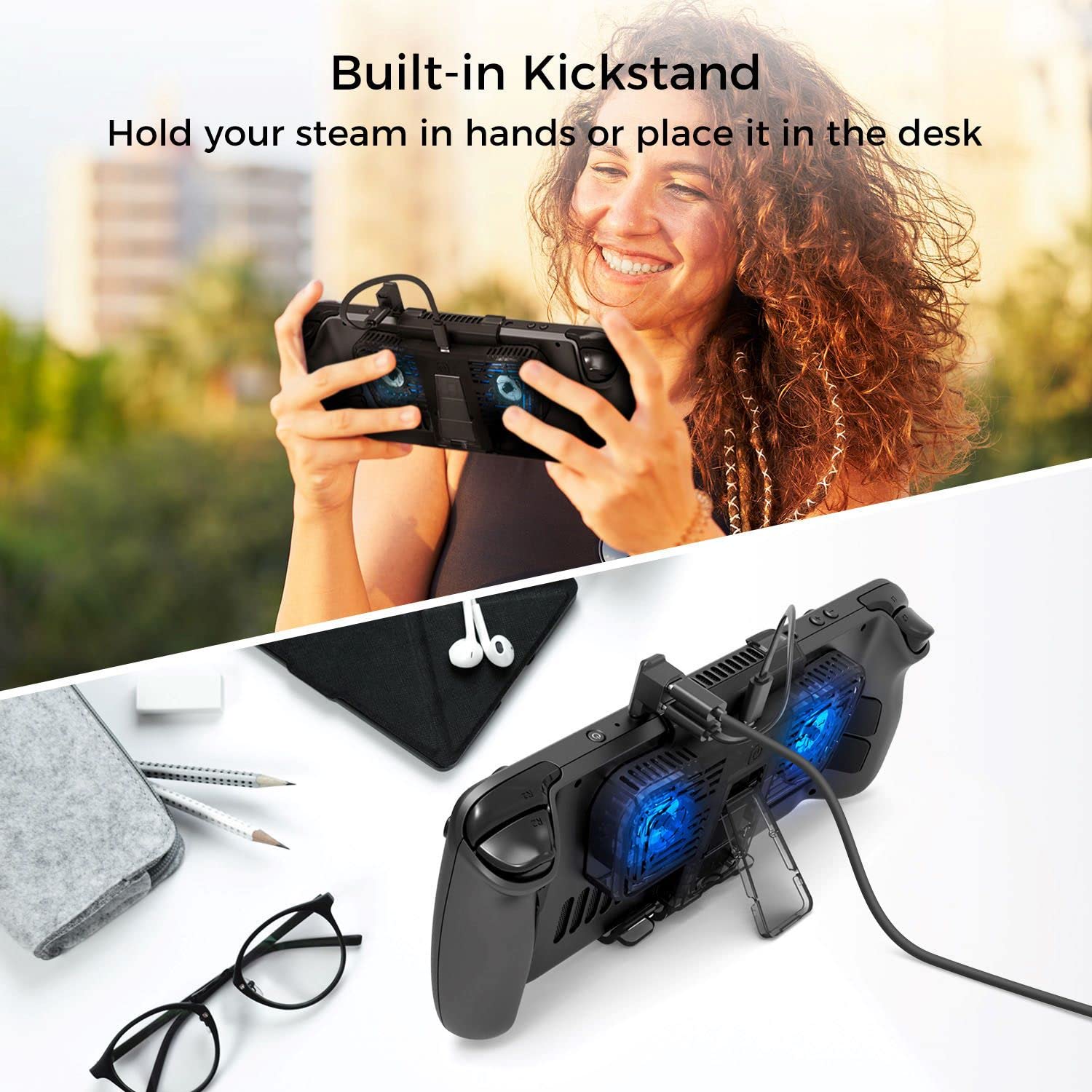 Fan Cooler Compatible with Steam Deck - Sonicgrace Blue RGB Cooling Fan for Steam Deck with Kickstand & USB-C Adaptor, Adjustable 3-Level Wind Speed Dual Efficient Cooling Fan