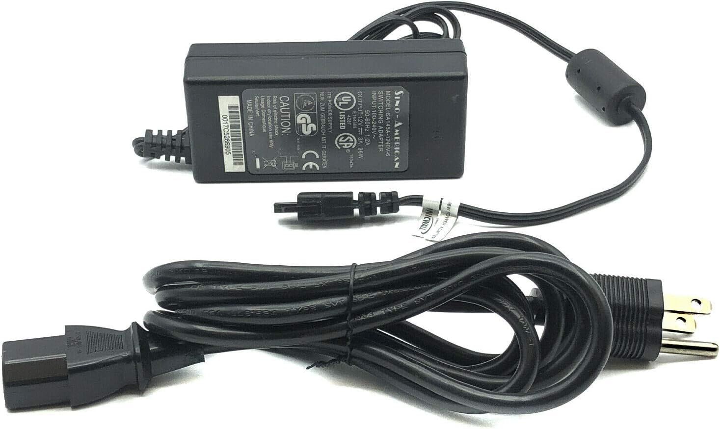 SonicWall Power Supply SYS1359-3612-T3 Adapter 12V 3A 36W 2 pin Brand: Sino-American Model: SA145A-1240V-6 Input: 100-240V 1.2A 50-60Hz Output: 12V 3A Wattage: 36W Comes with a Power Cord.