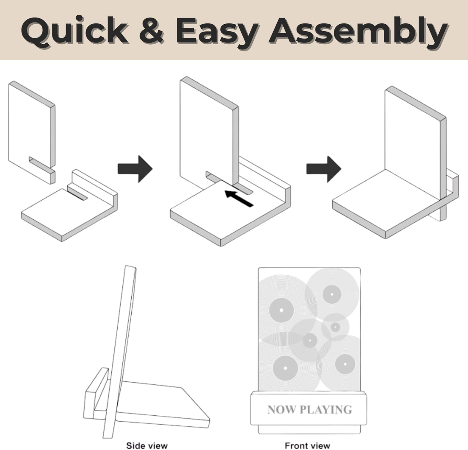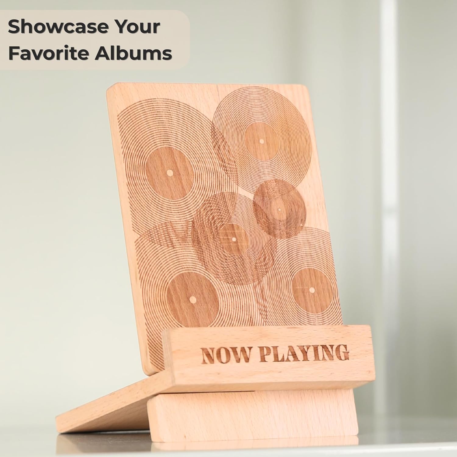 Elevate your record display with this exclusive 2-pack vinyl stand bundle by Sonny & Sloane. Perfect for audiophiles, collectors, or as a thoughtful gift, this duo includes two beautifully crafted wood "Now Playing" holders — one with a sleek, minimalist engraved design and one in natural, unstained wood with a groovy retro touch. Whether you’re switching up your style or sharing the music magic with a friend, this bundle adds charm and function to any vinyl lover’s space. Crafted for easy access and aesthetic appeal, these stands hold your currently spinning album upright and proudly on display. Perfect for shelves, consoles, or turntable setups, they keep your space organized while highlighting your taste in music.