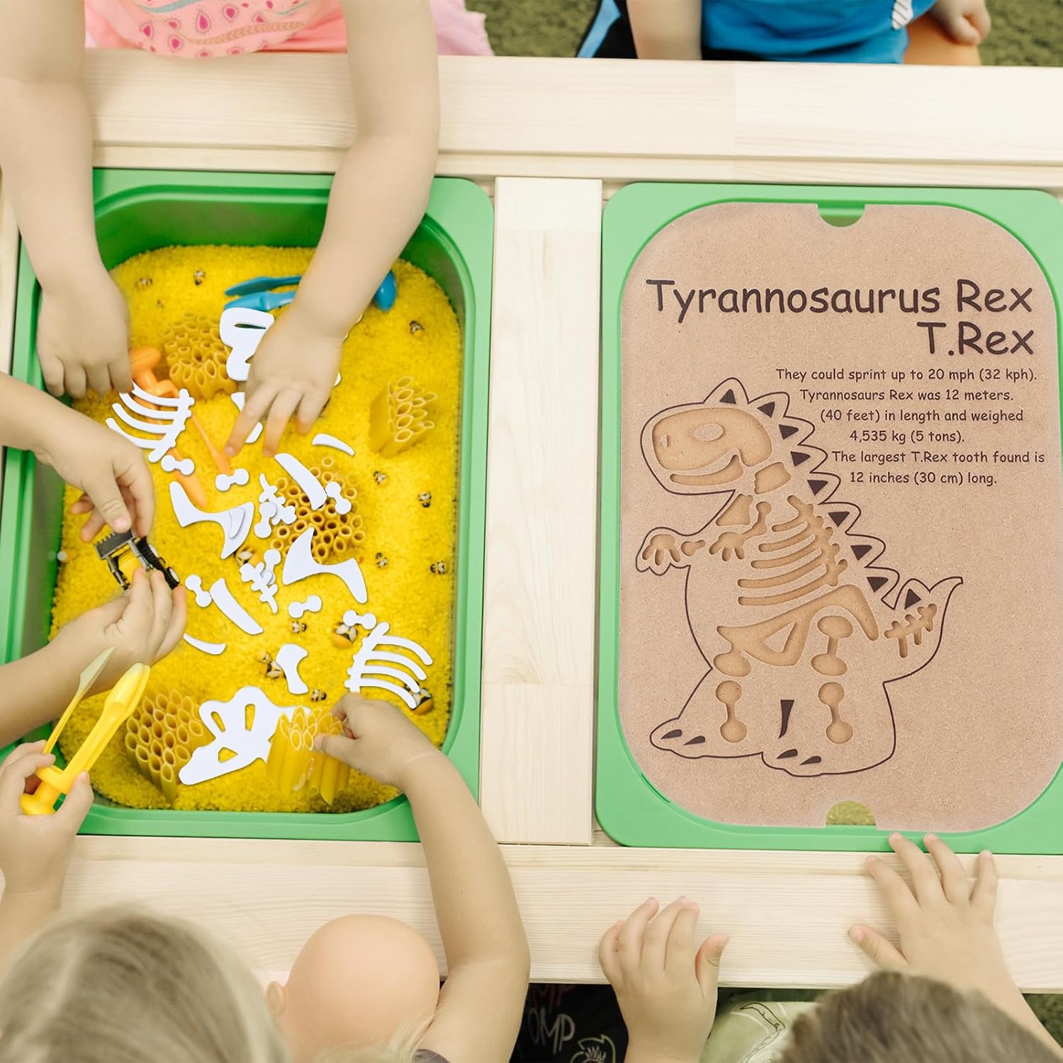 | Included Components | 3 x Dinosaur puzzle board sensory table inserts |