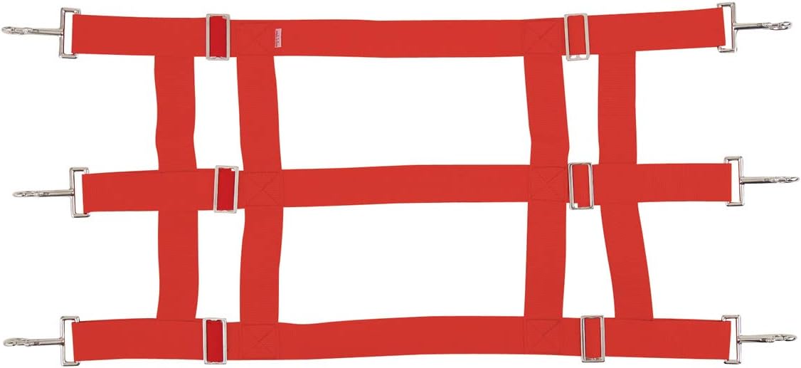 Give your horse fresh air and visibility without leaving the stall door wide open. The Southwestern Equine Premium Nylon Stall Guard stretches across the doorway to keep your horse safely contained while allowing airflow, natural light, and social interaction with neighboring horses.Made from heavy-duty premium nylon webbing, this stall guard is built to withstand daily barn use without fraying, stretching, or losing its shape. The adjustable design fits stall openings from 40 to 46 inches wide, and the secure hardware attaches quickly to standard stall door frames for a snug, reliable fit.Ideal for barns where horses benefit from seeing the aisle activity or where ventilation is a priority during warm months. A stall guard encourages calmer behavior by reducing the boredom and isolation that come with a closed stall door, making it a practical addition to any boarding facility, training barn, or private stable.Available in multiple colors to coordinate with your barn setup. Upgrade your stall fronts with a guard that is easy to install, simple to adjust, and tough enough to handle everyday use.