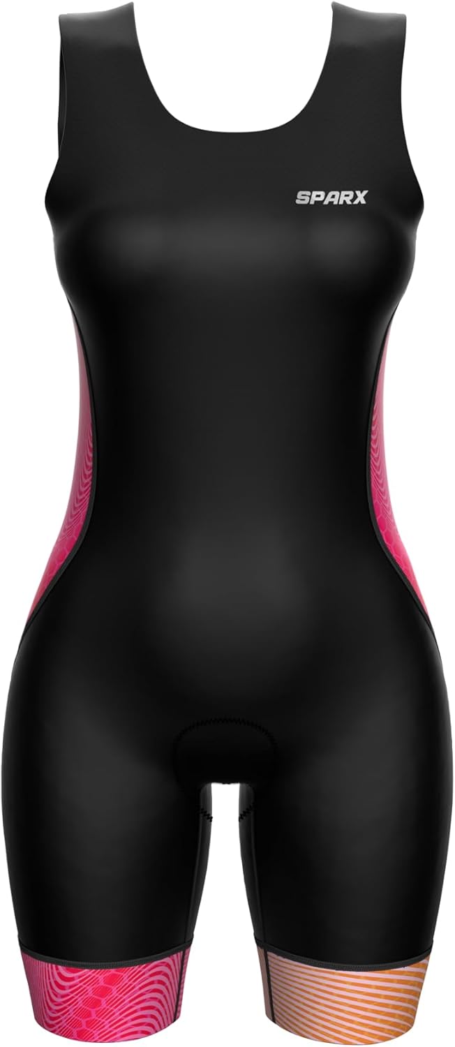 Sparx Men Premium Triathlon Suit Superior Quality performance suit provides excellent muscle support so you go further. Perforated tri pad specially designed to keep you comfortable throughout your entire sport. Want a perfect short sleeve suit for triathlon men? WHY DO YOU NEED OUR TRIATHLON SUIT? Aero Tri Suits for Men is a one-piece garment suitable for sports like; swimming, cycling and running. Our triathlon suits has non-chafing, quick-drying features with rear padding and pockets that allow it to be the perfect piece of garment to be worn during these activities. Our triathlon mens tri suits is made out of 80% polyamide (nylon) that is famous for its strength, durability, and more fibers that allow you to have more elasticity offering easy movement, and also gives it a soft and better feel. 20% of it is made up of Italian elastane that isn’t only lightweight and comfortable to wear but it has great elasticity and is resistant to perspiration so that once you wear this suit – you wear it to win! BEST CHOICE FOR RUNNING, SWIMMING, AND CYCLING trisuits for men If viewed from a running point of view; this suit has a good percentage of nylon which allows it to be stretched to the maximum range of your motion. From a swimming point of view, we have made sure to make our suit not only UV protective but UPF 50+ high chlorine resistant as well with gel thigh grippers that keep your shorts in place. Last but not least, if you are wearing it for cycling, the rear reflective elements allow you to see in the dark and the padded rears let you cycle for a long time without feeling irritated!