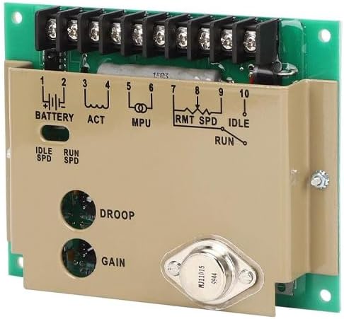Speed Governor 4913988 Controller Diesel Generator Set Engine Control Unit 1. IDEL is an idle speed adjustment potentiometer, forward rotation is rising, reverse rotation is falling. 2. RUN is the running adjustment potentiometer, forward rotation is rising, reverse rotation is falling. 3. GAIN is a gain-adjusting potentiometer, which has fast spin response and good reverse spin stability 4. DROOP is a speed regulation (speed drop) potentiometer (the speed drop can be controlled within the range of 0 to 5% at full load) 5. The product has high quality which can make sure the stable performance Item Type: Governor Speed Control Board Power Supply Voltage: DC 24V Connect pin 1 to the positive pole of the battery and pin 2 to the negative pole of the battery. Pin 3, 4 is connected to the actuator. Pin 5 is connected to the positive pole of the speed signal, and pin 6 is connected to the negative pole of the speed signal. Pins 7, 8 and 9 are connected to external fine-tuning potentiometers, of which pins 7 and 9 are connected to both ends of the potentiometer and pin 8 is connected to the midpoint of the potentiometer. Pins 10 and 7 are connected to both ends of the idle / run switch. When it is connected, it is idle speed, and when it is disconnected, it is running. IDEL is an idle speed adjustment potentiometer, forward rotation is rising, reverse rotation is falling. RUN is the running adjustment potentiometer, forward rotation is rising, reverse rotation is falling. GAIN is a gain-adjusting potentiometer, which has fast spin response and good reverse spin stability. It is recommended to adjust between 7 grid. DROOP is a speed regulation (speed drop) potentiometer (the speed drop can be controlled within the range of 0 to 5% at full load), it is recommended to adjust between 1 grid.