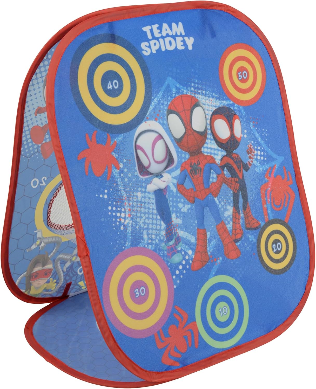Get your game on with the Spidey & His Amazing Friends quick up bean bag toss and target game. Compete against friends and family to see who can score the most points. Easily assemble with the quick up design for instant play. Fully printed with colourful graphics of Spidey & His Amazing Friends. Made from durable 190T polyester which is water resistant and flame retardant for piece of mind. Suitable for both indoor and outdoor use with ground pegs for extra stability for when using outdoors. Take on play dates or adventures in the park with the included carry bag.
