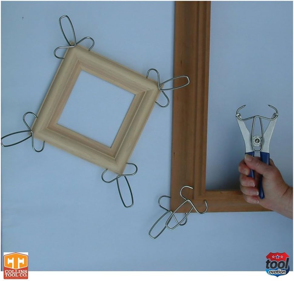 Whether you are applying moldings and trim or whipping up a run of picture frames one of the biggest hassles in gluing up mitered corners is keeping them from opening up.Spring clamps are the quickest and easiest way to do it and the Collins Spring Clamp System is one of the most economical we've ever come across.The clamps spread up to approximately 2, so they will cover most trim sizes and any compound miter. The clamps can be applied and removed by hand, but the Spring Pliers make the job much easier.They will really save your hands, plus the Pliers place clamps exactly where you want them, and help keep you from scratching stock when you remove them. Includes pliers and 4 miter clamps.
