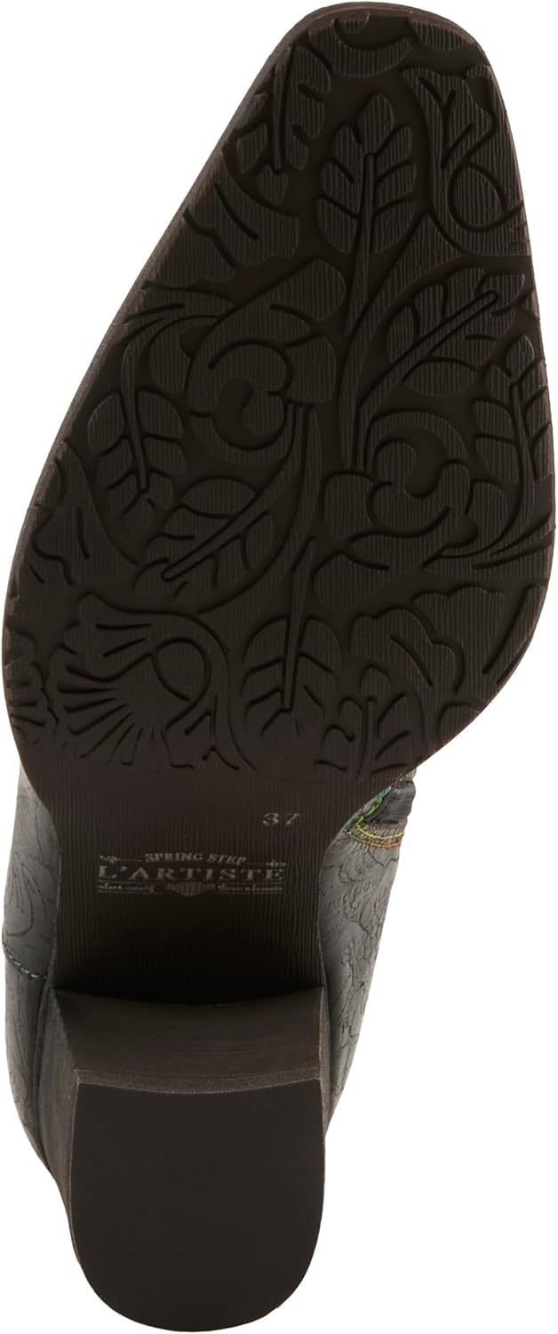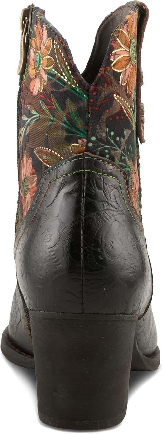 Embrace the perfect fusion of Western charm and artistic flair with the L'Artiste Brydie Booties. Crafted with a luxurious leather combo upper, these boots feature intricate floral embroidery and embossed detailing for a truly unique look. The sleek pointed toe and faux stacked heel give it a classic cowgirl-inspired edge, while the side zipper closure ensures easy on-and-off wear. Designed for all-day comfort, the cushioned insole and sturdy construction make this boot a must-have for trendsetters who love bold, chic statement footwear. Whether paired with denim or dresses, the Brydie boot effortlessly adds style to any look.
