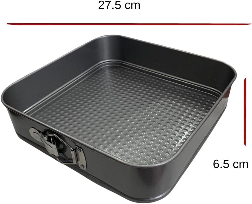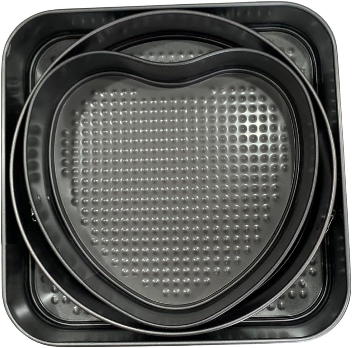 Transform your baking experience with this versatile 3-piece springform pan set featuring heart, round, and square shapes. Each pan measures 6.5 cm (2.6 inches) in height, with varying diameters - the heart pan at 23.5 cm (9.3 inches), round pan at 26 cm (10.2 inches), and square pan at 27.5 cm (10.8 inches). The non-stick coating and textured bottom ensure easy release and even baking of your favorite cakes and desserts. The sturdy springform mechanism provides smooth release and secure closure during baking. Perfect for creating layered cakes, cheesecakes, tortes, and other delicate desserts that require careful removal. The durable construction ensures consistent results every time you bake. These pans are ideal for both professional bakers and home cooking enthusiasts who want to create picture-perfect baked goods. Hand washing recommended to maintain the non-stick surface quality.