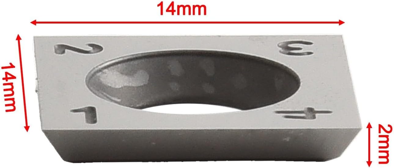 Product description FeaturesWhole carbide inserts provide you with better experience and long-lasting use experience, suitable for general wood, particle board, plywood, MDF/HDF.Excellent replacement carbide blade cutters, especially suitable for spiral heads.Standard size-14mm(length)X14mm(width)X2.0mm(thickness), square straight For edge, 4 edges, 30 degree cutting angle.Most convenient-if blade is dull or chipped, just turn it to another For edge, which greatly reduces your downtime. And all have the same.Carbide tool corners are very , with almost no radius, the choice for turning straight contours and nearly 90° internal angles.SpecificationsPart Name: Carbide InsertMaterial: CarbideColor: SilverShape: Square Straight 4 SidesSize: Length: 14 mmWidth: 14 mmThickness: 2.0 mmAngle: 30 degreesPackage Contents10 x Carbide Inserts10 x Screws x WrenchNote:.The real color of the item may be slightly different from the pictures shown on website caused by many factors such as brightness of your and light brightness.2.Please allow slight manual measurement deviation for the data. Manufacturer Contact Information PETiB
