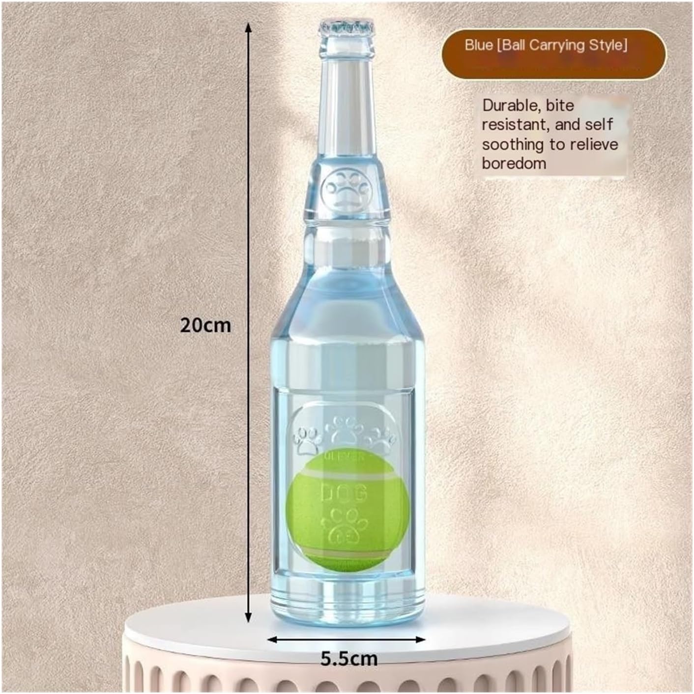 This innovative chew toy combines the fun of a tennis ball with the satisfying texture of a chewable bottle design to create engaging play experiences for dogs. The realistic beer bottle shape contains an internal tennis ball element that produces entertaining crinkly squeaks when compressed or chewed, capturing your dog's attention and stimulating their natural instincts.Constructed from durable rubber material, this toy is designed to withstand regular chewing while being gentle on teeth and gums. The textured surface helps clean teeth during play, and the hollow design creates an appealing crunch that dogs love. Available in two sizes, the toy accommodates both small and large breeds with appropriate chewing challenges.Key benefits include:Satisfies natural chewing urges with safe, durable materialAudible feedback maintains interest and engagementHelps reduce destructive chewing behaviorsProvides mental stimulation through interactive playSupports dental health through gentle gum massageThe lightweight design makes it easy for dogs to carry and toss, while the familiar shapes (bottle and tennis ball) trigger playful responses. Whether used for solo chewing or interactive fetch games, this versatile toy helps:Redirect inappropriate chewingProvide comfort during alone timeEncourage active playSupport dental hygieneReduce boredom-related barkingEasy to clean with soap and water, this chew toy offers long-lasting value and entertainment. The simple yet effective design makes it suitable for puppies learning appropriate chewing habits and adult dogs needing an outlet for their energy