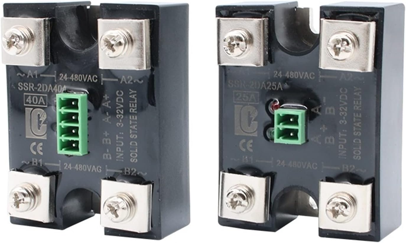 relaySSR-2DA10A 25A 40A 60A 80A Dc control Ac Dual Output Control 2 Phase Solid State RelaySTEP 1: Choose a correct typeCurrent of Equipment/Ratio = Current of SSRPS: The Ratio depend on the kind of your loading equipment.Resistive load :70%, Inductive load:20%,Capacitive load:10%.STEP 2: Choose a suitable heat sink.During the useage of SSR, it will give out a lot of heat, so in order to extend the life of your SSR, please install a heat sink , also if the current is over 60A,the cooling fan also required.PS: Our Heat Sink include 2 screws (for install heat sink) and a pack of thermal compound (is applied to the bottom of the SSR)