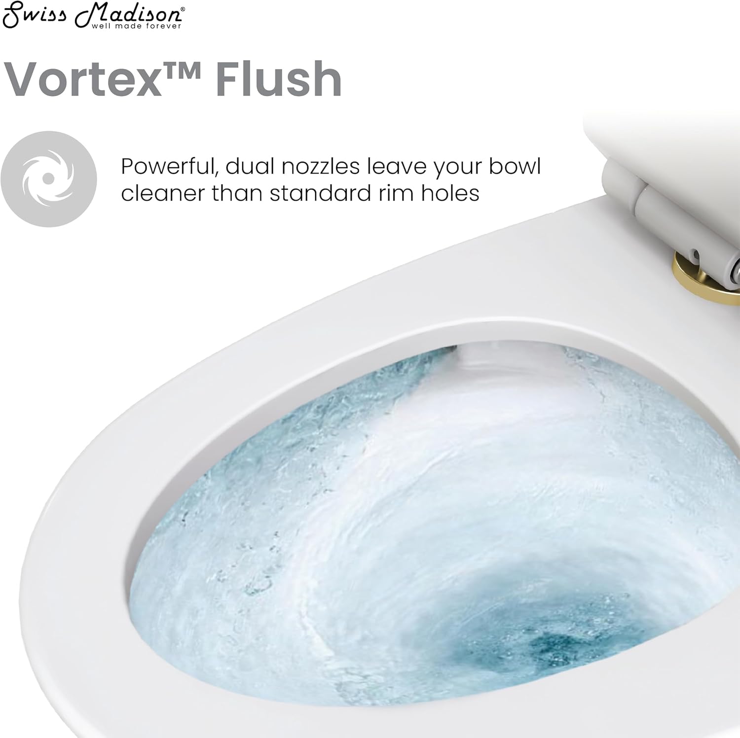 The St. Tropez One-Piece Elongated Toilet features our soft-close and quick-release seat. Its dual-flush function conserves water without compromising on power, while our Vortex™ flush technology uses powerful dual nozzles to keep your bowl cleaner than standard rim holes.