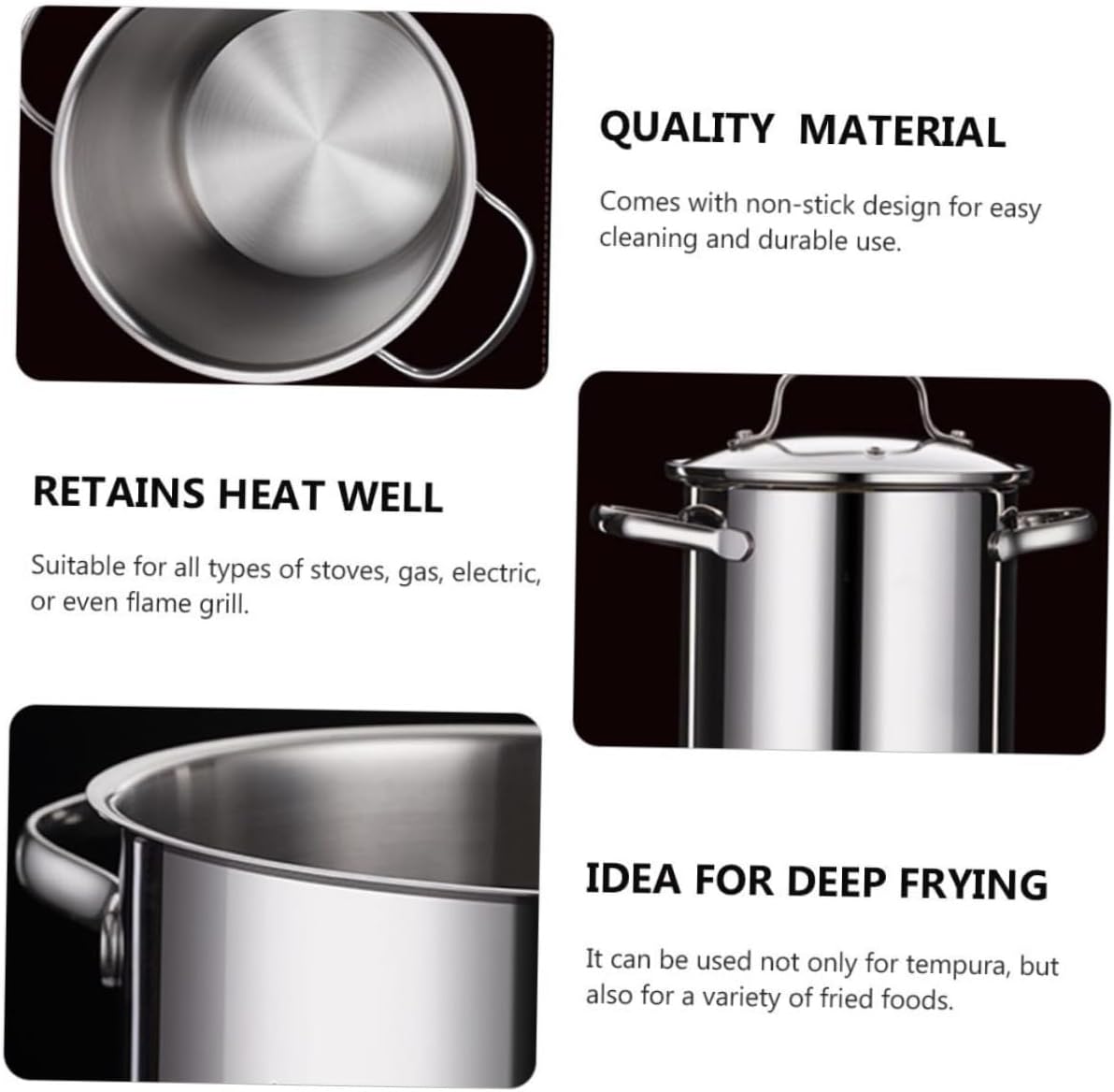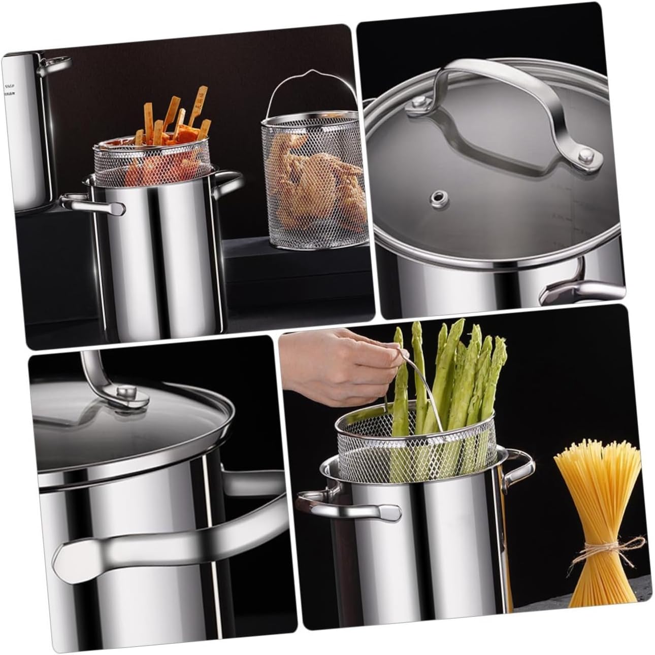 Package Include 1 x fryer 1 x frying basket Features - Color: Silver Kitchen Frying Tool. - Size: About 28.00X24.50X24.50cm/11.00X9.63X9.63inch Frying Pot with Frying Basket. - Material: Stainless steel Household Frying Pot. - High pot anti overflow a pot multi-purpose save 50% oil spillage anti splash Deep Fryer Pan. - Suitable for home, restaurant and kitchen use Stainless Steel Fryer. - The three-layer remaking process saves energy and time Deep Frying Pan. - Stew the whole chicken easily in a large volume in a small pot Kitchen Supply. - Increase the height of the pot, frying to reduce the of oil scald, keep the kitchen sanitary Tempura Frying Pot.Goods InformationStainless Steel Fryer Pot Japanese tempura is a deep-fried delicacy that is delicious and appetizing to go with any other meals.Deep Fryer Pan Comes convenient drainer basket that uses less oil.Deep Fryer Pot This mini deep fryer pot makes it convenient to deep-fry your own tempura at home