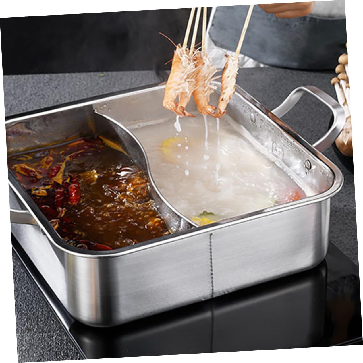 Package Include 1 x cooking pot Features -Color:Silver hot pot with divider -Size:26.00X26.00X9.00cm/10.22X10.22X3.54in divided hot pot pan -Material:Stainless steel, glass divided hot pot - This hot pot is for commercial and home use, allowing multiple people to enjoy the dining experience kitchen hot pot. - The Hot Pot is suitable for induction, stoves, gas, cooktop, Hot Pot is easy to use pan with divider. - Manufactured with stainless steel, glass material, the pot is and enough to use chinese hot pot cooker. - Lightweight and , bring you a warm feeling in cold weather. It also can be used easily hotpot pot. - The compartment design allows you to cook hot pot of different flavors, can meet different taste at the same time food cooking hot pot.Goods Informationdivided hot pot pan This is a Hotpot, made of selected materials, and to use. hotpot pot Suitable for family, friends gatherings and hot pot restaurants.stainless steel pot Equipped with handle design, you can easily be used.multi-purpose pot The compartment design allows you to cook hot pot of different flavors, can meet different taste at the same time