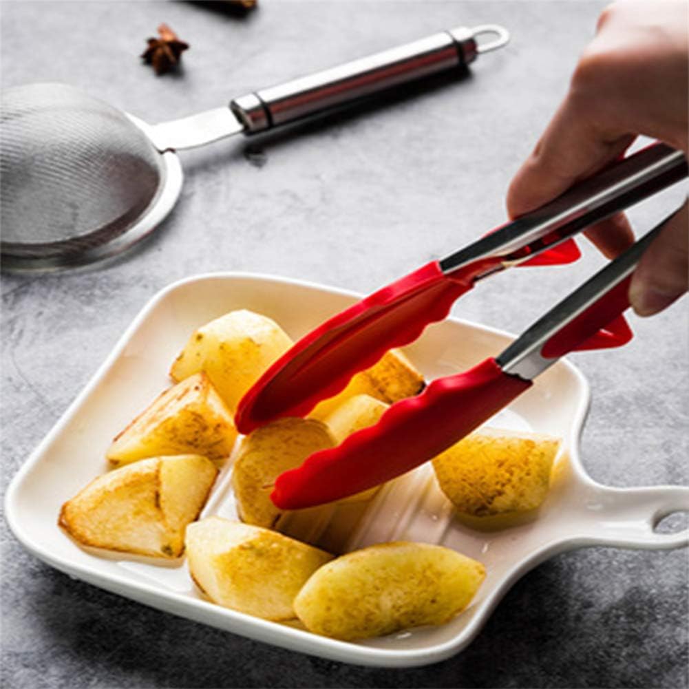 tongs are made from high quality corrosion resistant food grade stainless steel for premium strength and durability for all you cooking and serving needs. The silicone tips and handles are made from 100% food-grade, BPA free and PVC free silicone. Each has an ally designed soft silicon pad handle to ensure firm grip and greater comfort during cooking or serving.Silicone tipped tongs are made of nonstick, heat resistant and BPA/PVC free silicon tips that will not scratch your non-stick pans or grill grates. These kitchen tong are heat resistant up to 480 degrees F, and perfect for indoor and outdoor cooking. The silicon tips are non detachable, non stick, corrosion resistant and odor free.Each non stick tongs has a padlock /ring that provides a push-pull locking mechanism that allow you to easily open the tongs to a desired size while cooking. The ring provides a space saving convince by allowing you to hang the tongs anywhere in your kitchenSPECIFICATION:Material: Food grade silicone + stainless steelSize:1.2×10.6 in/3×27 cmWeight:135gColor:red-blackPackage includes: 2 ×Stainless Steel Kitchen TongsNOTE:★ Due to differences between different displays, the picture may not reflect the actual color of the item. We guarantee that the style is the same as shown in the picture.★Due to manual measurement and different measurement methods, please allow 1-3cm deviation. Thank you!