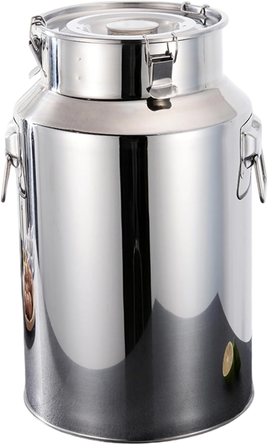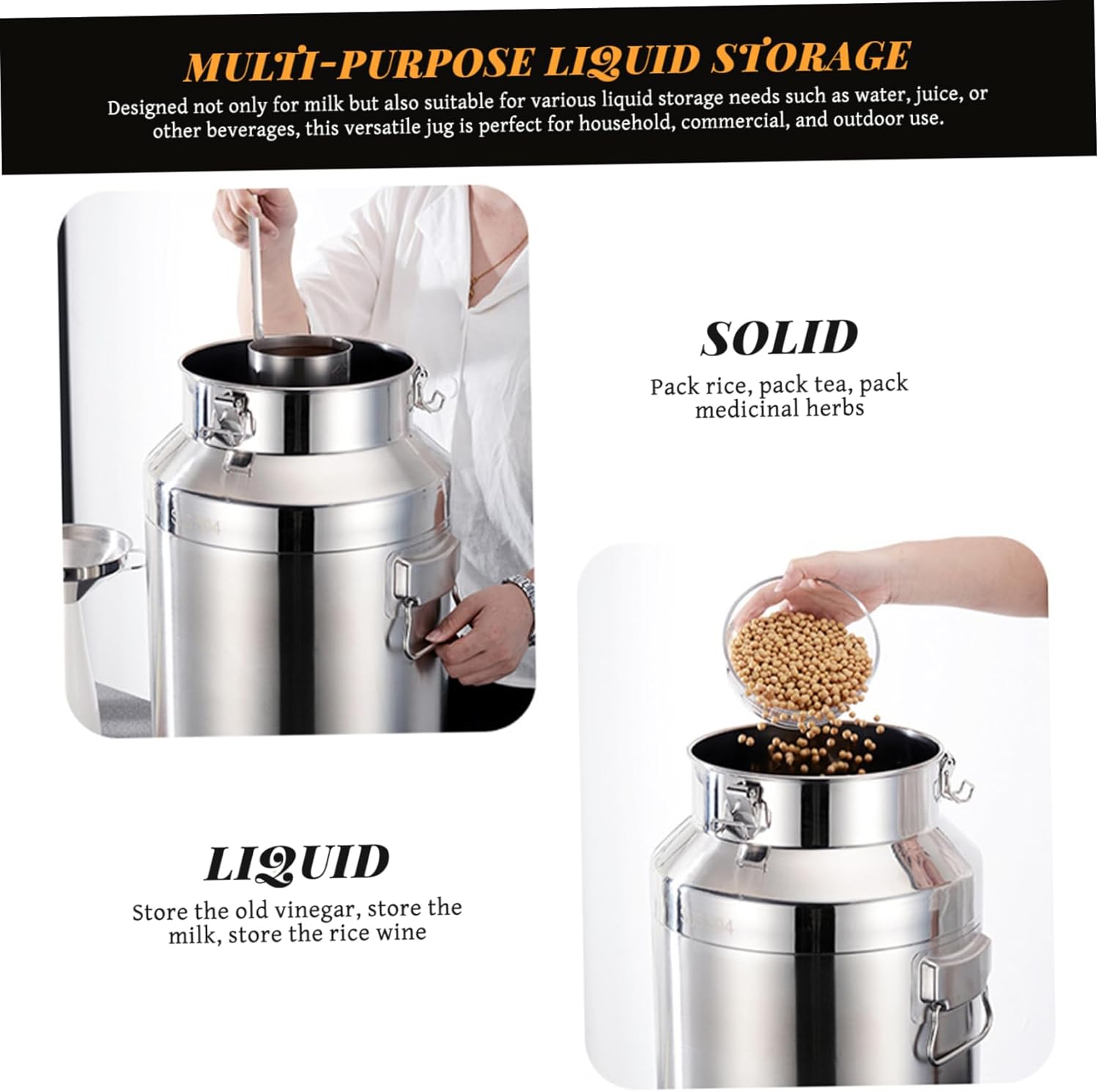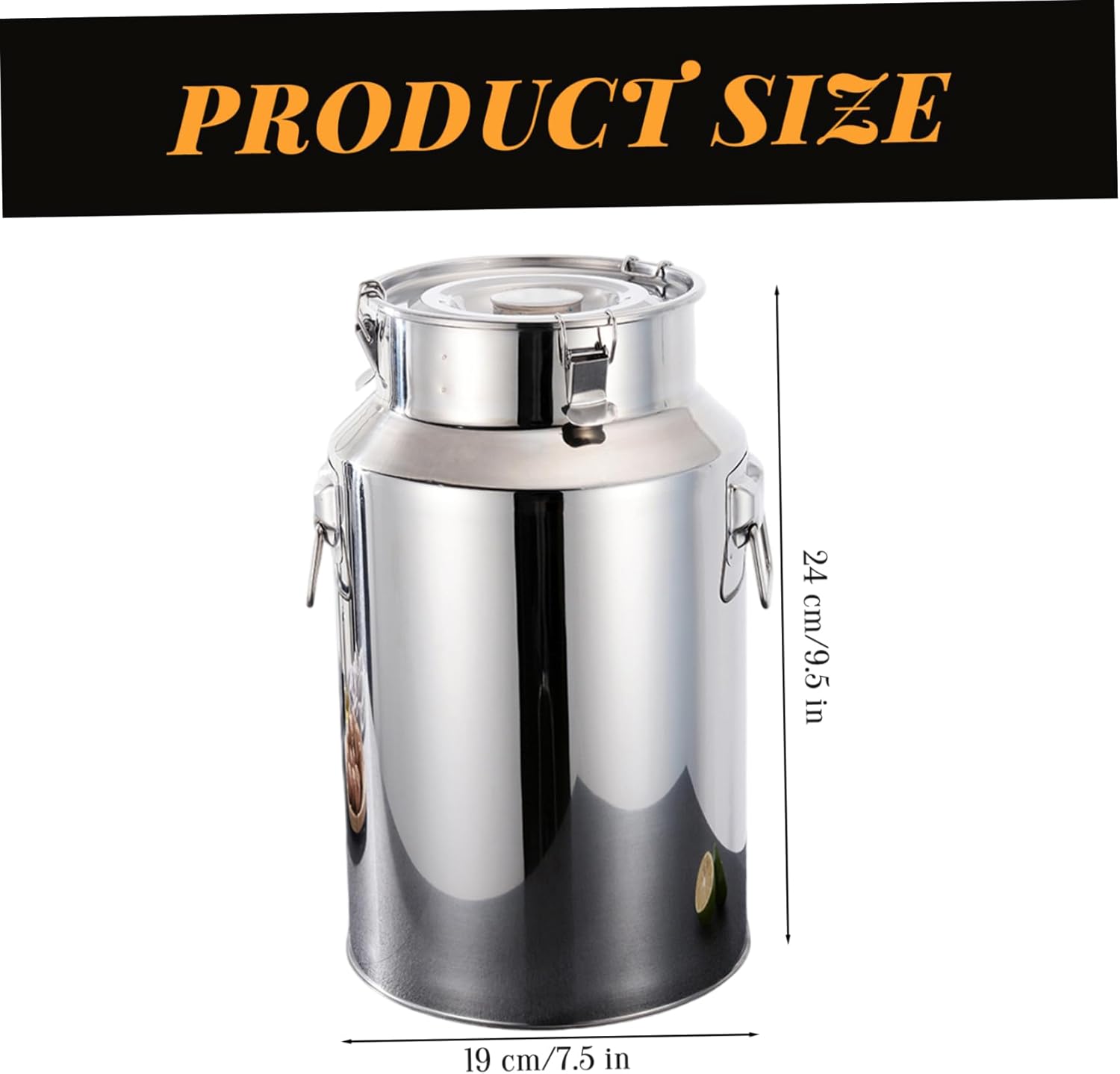 Description: Stainless Steel Milk Can 6L Heavy Duty Milk Jug with Sealed Lid, Lifting Ring & Carry Handle Stainless Steel Bucket for Liquid Storage combines robust stainless steel durability with a secure sealed lid that prevents spills and pollution while ensuring freshness; its ergonomic lifting ring and carry handle provide comfortable ease of transport, making it perfect for milk, water, juice, and other liquid storage needs in household, farm, or commercial environmentsall designed for easy cleaning and maintenance thanks to the wide opening and smooth stainless steel surface. Features:. Stainless Steel Milk Can. -Color: Silver. -Material: Stainless steel. -Size: about 19x24 cm/7.5x9.5 inch. -Capacity: 6L. Note: Manual measurement, please allow slight errors on size. The colors may exist slight difference due to different screens. Package Including 1 x Stainless Steel Milk Can