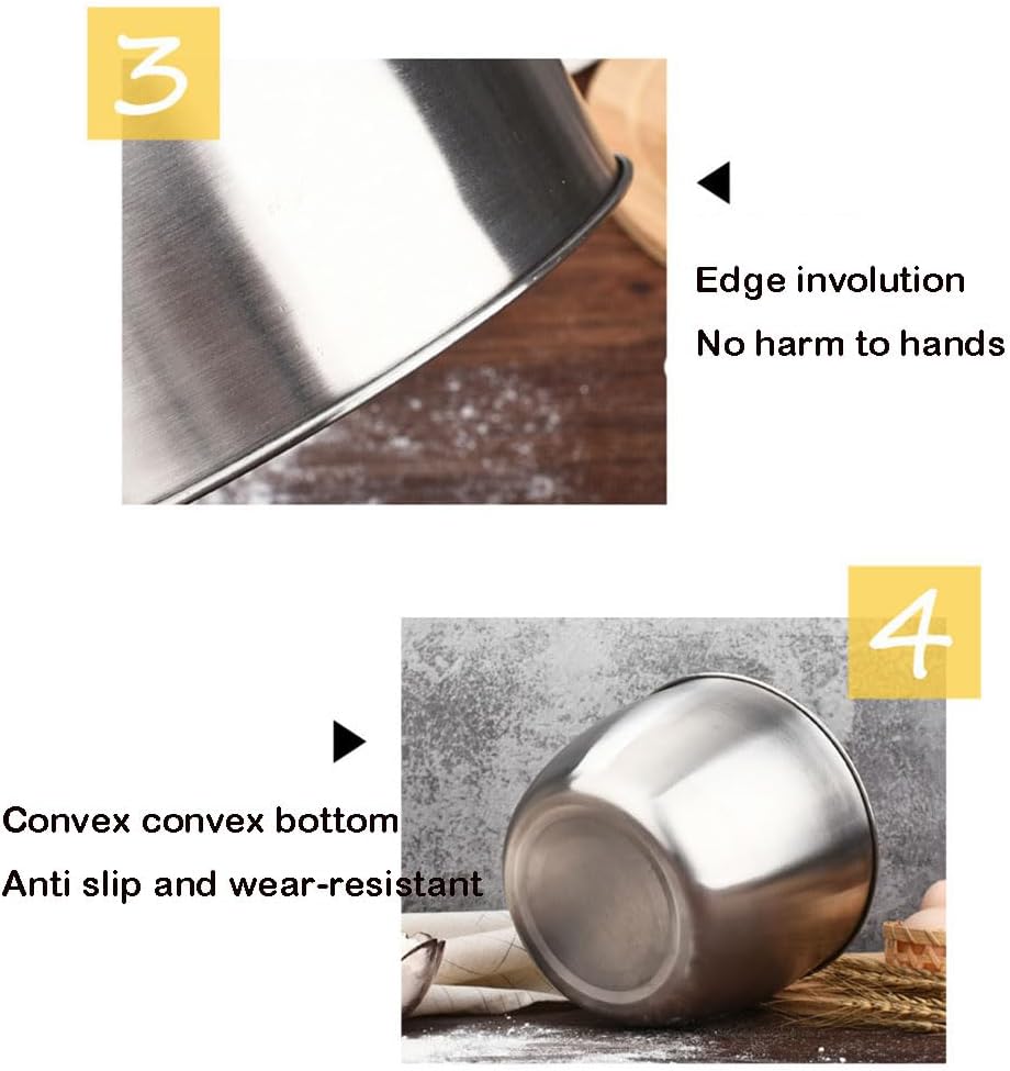 Product Name: Stainless steel bowlStyle: Modern and minimalistMaterial: Atainless steelColor:Gold, SilverShape: CircularSIZE: As shownApplicable audience: AdultsApplicable scenarios: family, hotel, food, others.Prompt:1.only sell Stainless steel bowl, not including other exhibits.2.Different measurement methods, Approximately 1-2cm error. Please refer to the actual product.3.Ue to factors such as light, monitor and placement angle, the product may produce chromatic aberration, which is subject to the actual product.
