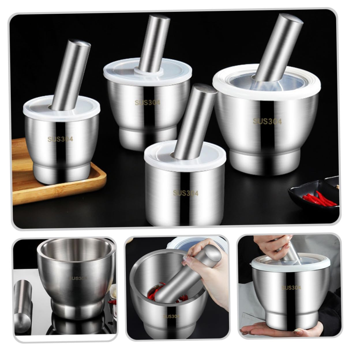 Package List 1 x set of Characteristics - No mess: The translucent lid allows you to measure your hits and keep the contents in the bowl instead of on the counter metal stone. - and stable: Made of solid metal, it feels solid in your hands and sits securely on your kitchen counter. The padding at the bottom makes it more stable stone. -Color:Silver metal -Product Info:Stainless steel garlic mortar -Material:Stainless steel, PP and pestle - Food safety: Because stainless steel does not retain residue or residual odor, it only needs to be rinsed thoroughly & pestles. - Strong rust-proof material: pestle and are made of food grade stainless steel. Not only do they resist rust, but they also resist the damage and corrosion of acidic foods and. -Size:10.00X10.00X10.00cm,15.00X3.50X3.00cm/3.93X3.93X3.93in,5.89X1.38X1.18in Chili powder mashed tool - Small , which one person can pick up with one hand, is very easy to use and saves energy grinding bowl.Goods DescriptionChili powder mashed tool The translucent cover not only allows you to gauge your impact, but also prevents flying debris from causing confusion.stainless steel and pestle setting This with a lid can solve this problem.rock A non-skid base is easier to use and feels more stable in your hands.spice with cover When you crush a pepper, your biggest worry is that it will splash everywhere and get into your eyes if you are not careful, which is very uncomfortable